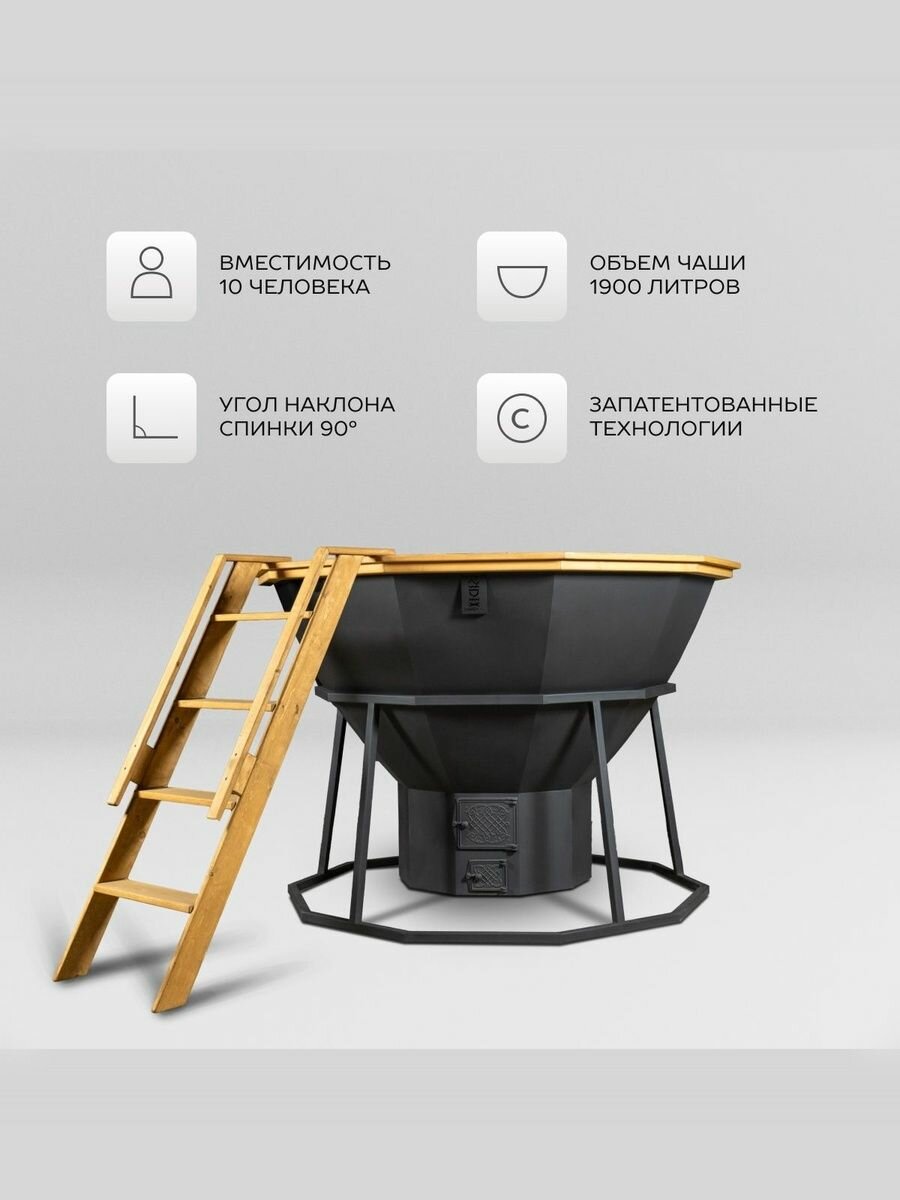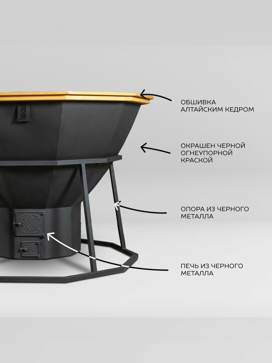 Сибирский банный чан на 10 человек окрашенный на подставке с печью на дровах интересное: