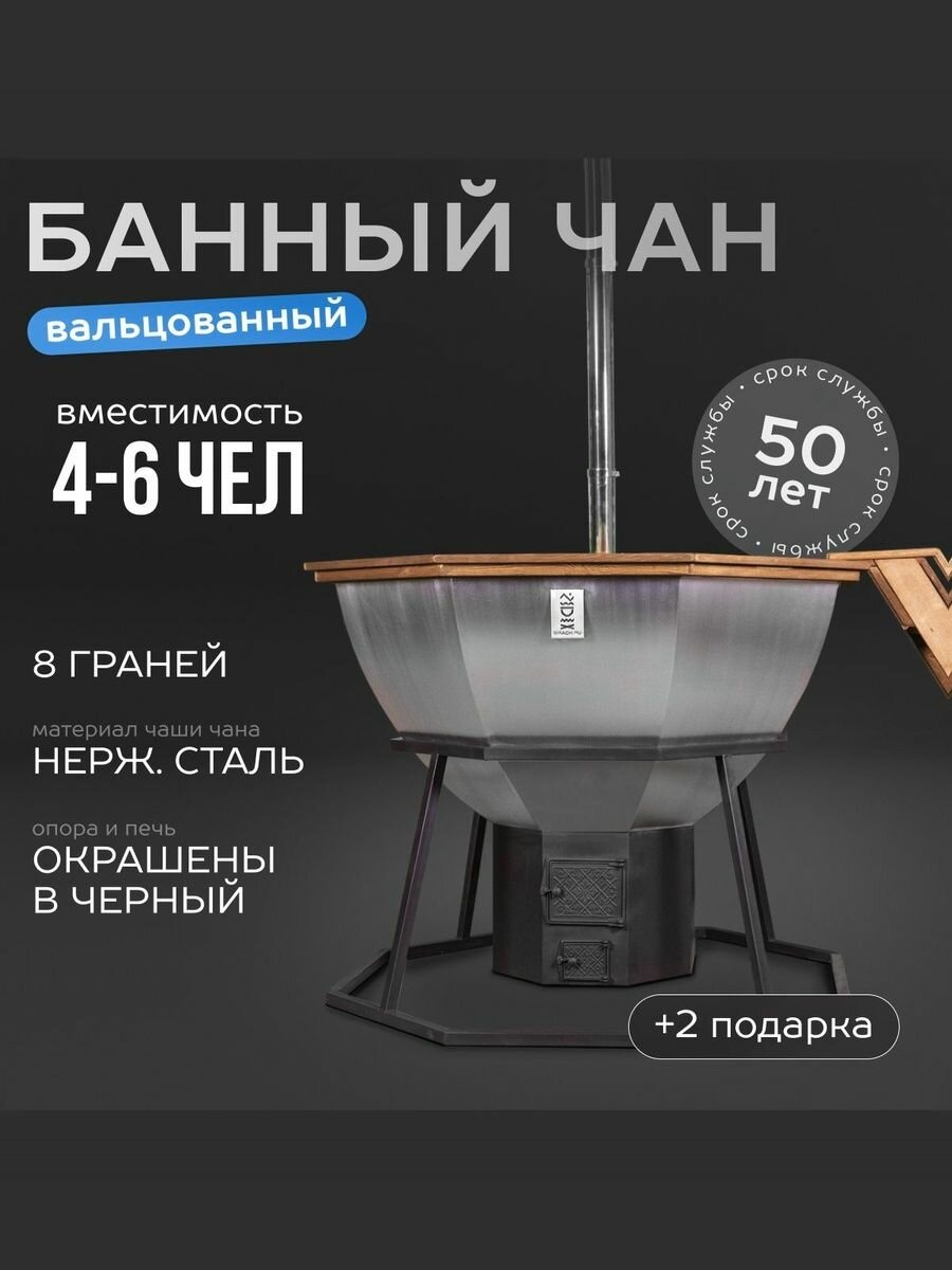 Сибирский банный чан на 4 человека с печью на дровах, на опоре, окрашен в черный цвет интересное: