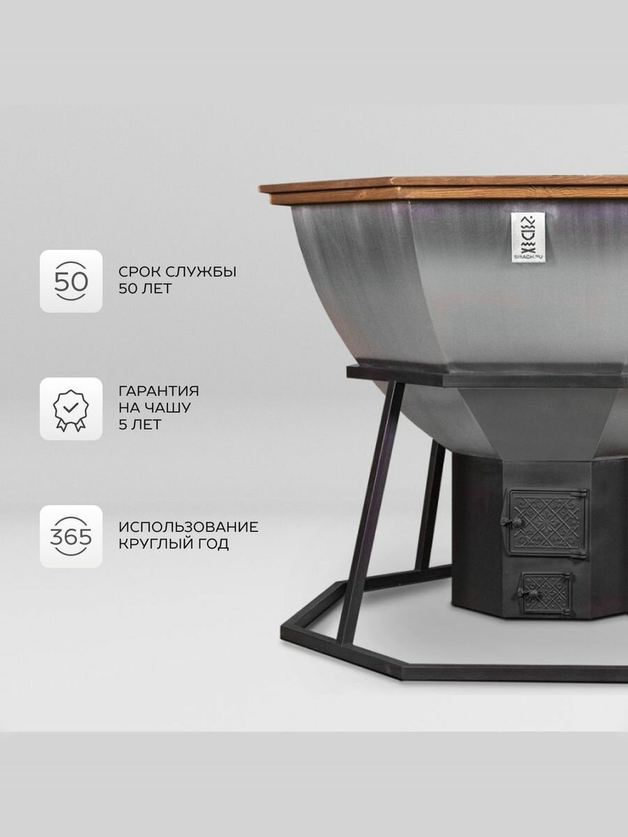 Сибирский банный чан на 6 человек с печью "водяная рубашка" на дровах, серый металлик
