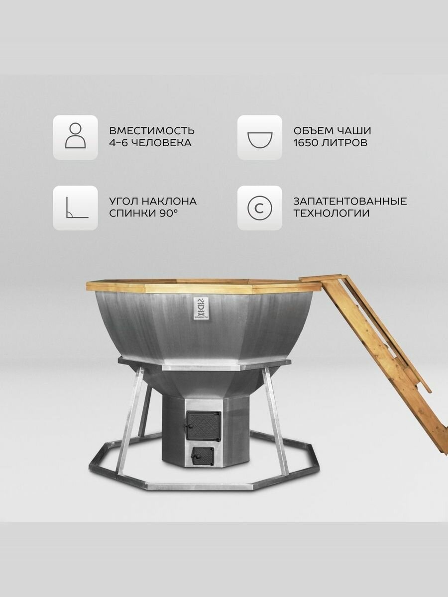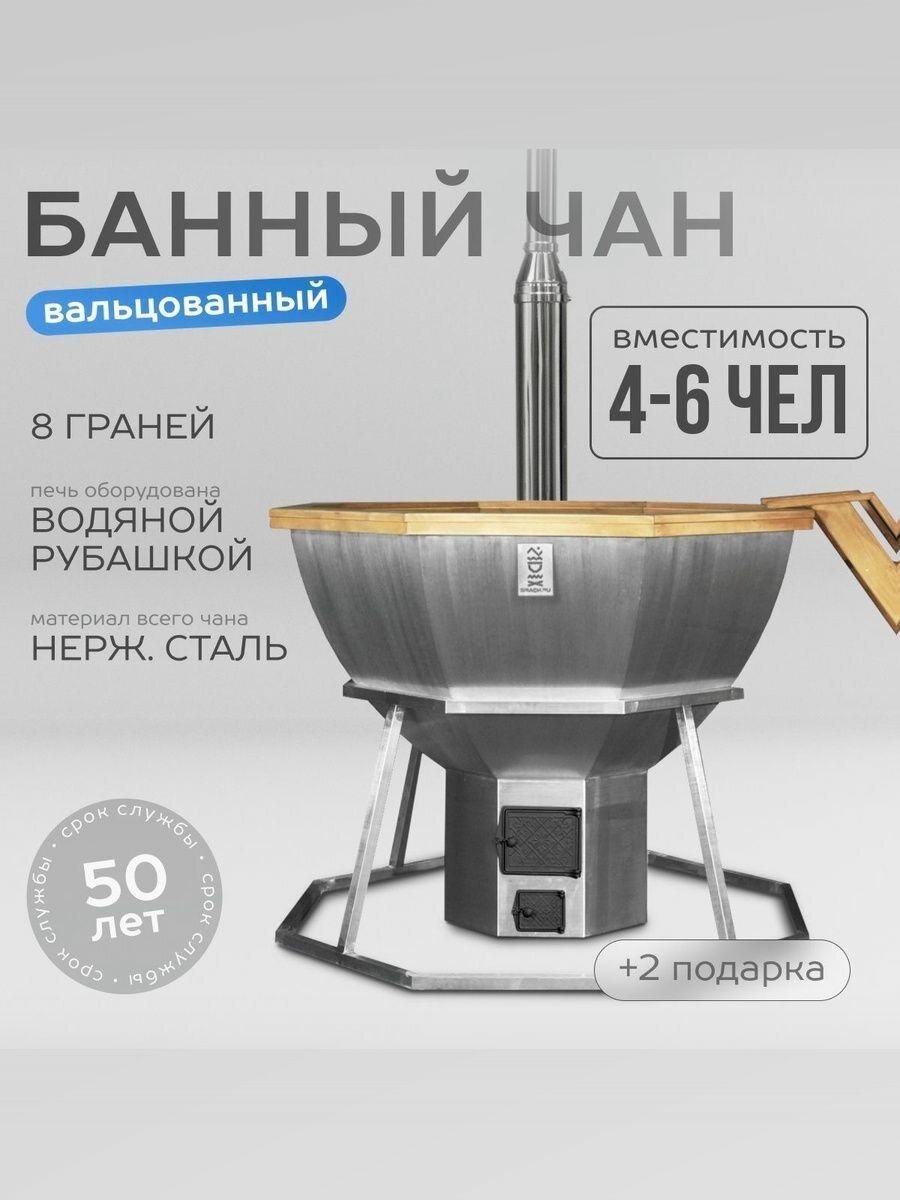 Сибирский банный чан на 6 человек с печью "водяная рубашка" на дровах, серый металлик интересное: