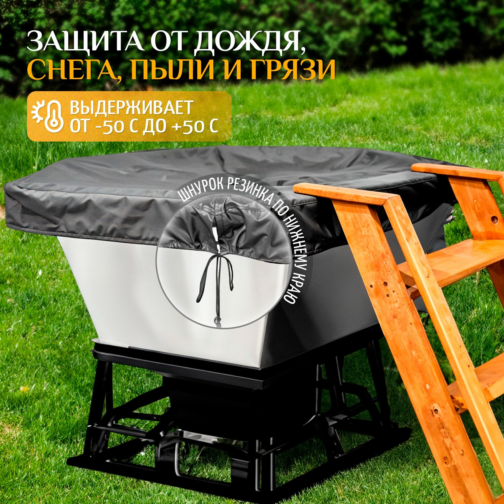 Чехол для банного чана Fler, водонепроницаемый, 225х225 см, темно-серый интересное: