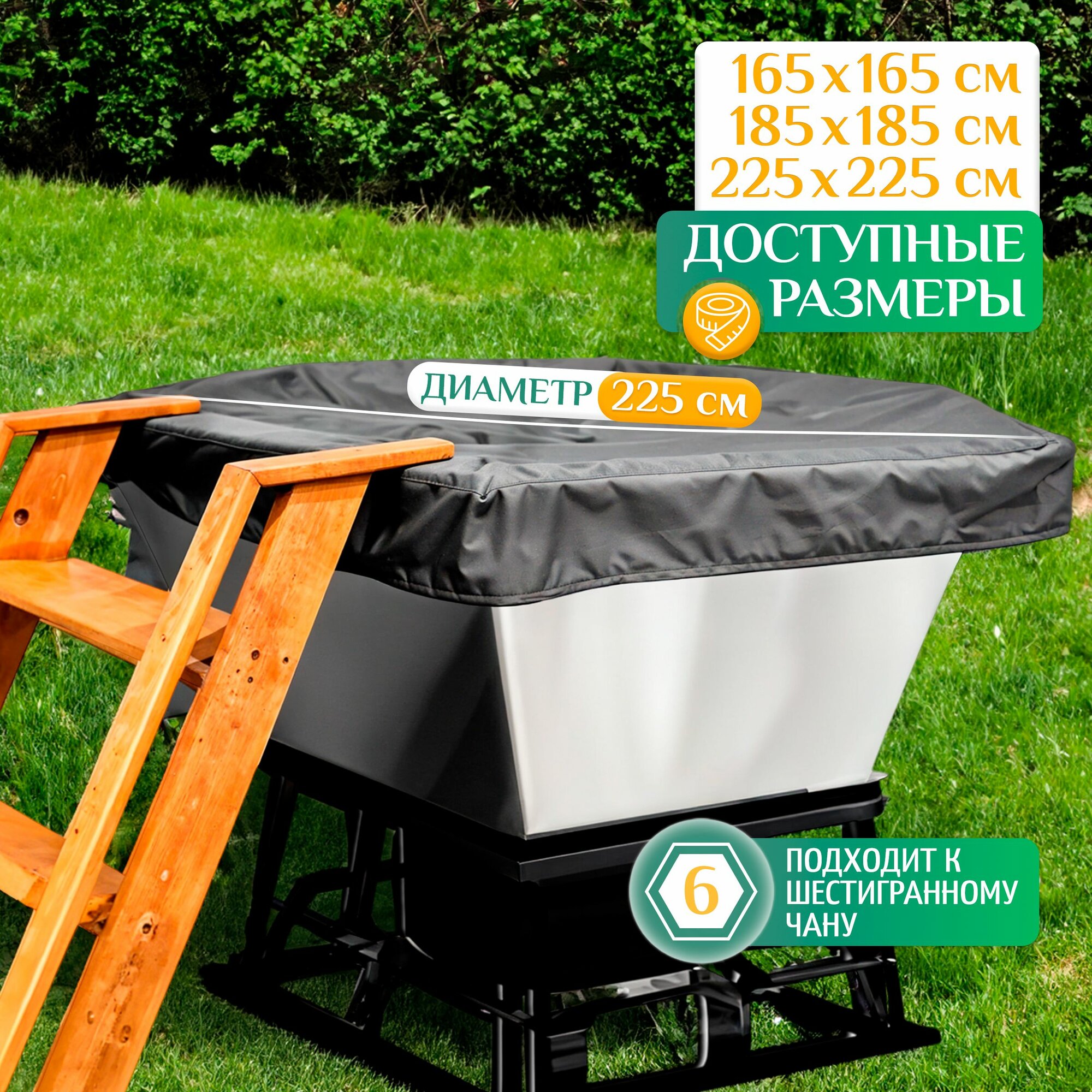 Чехол для банного чана Fler, водонепроницаемый, 225х225 см, черный