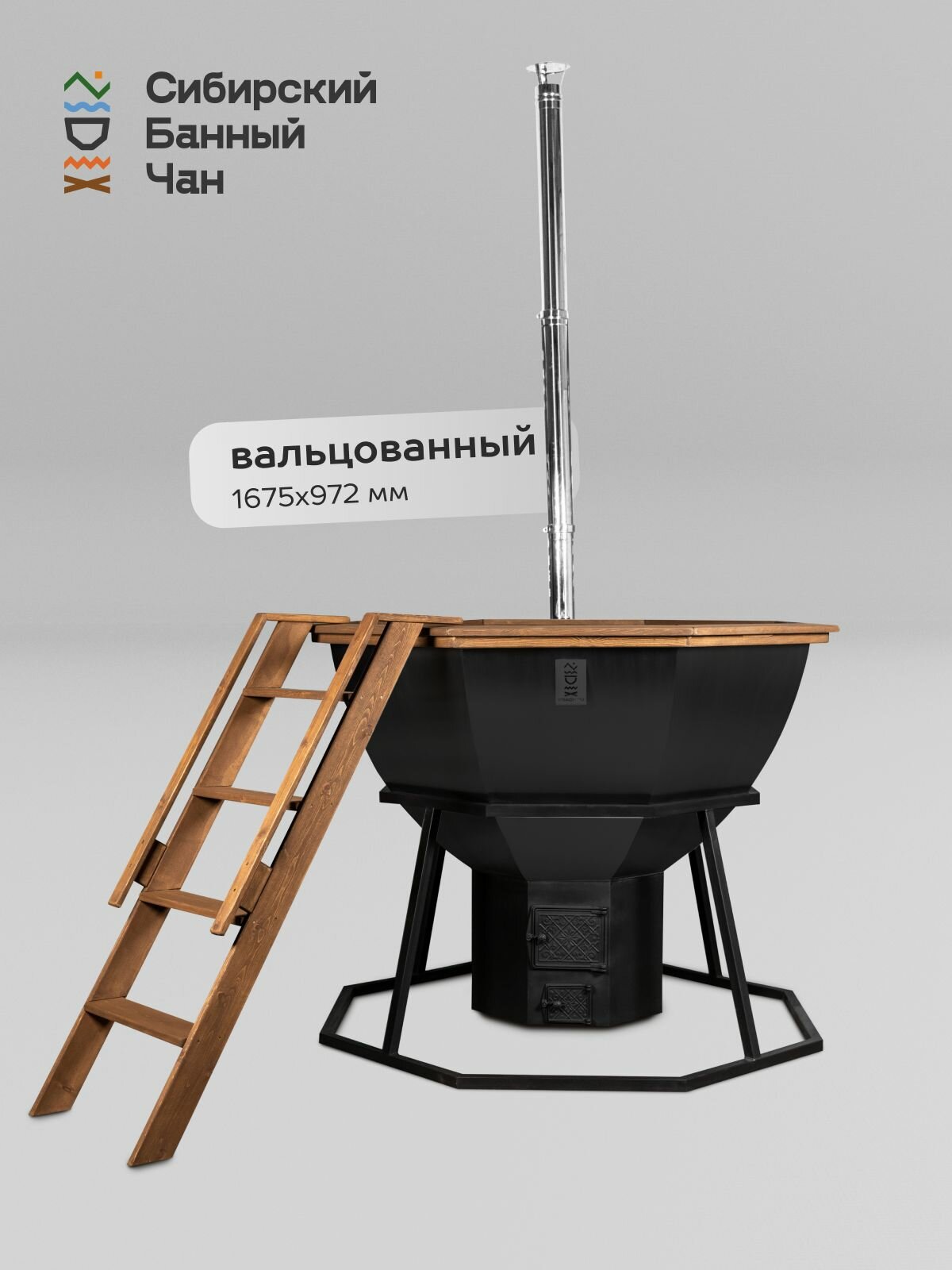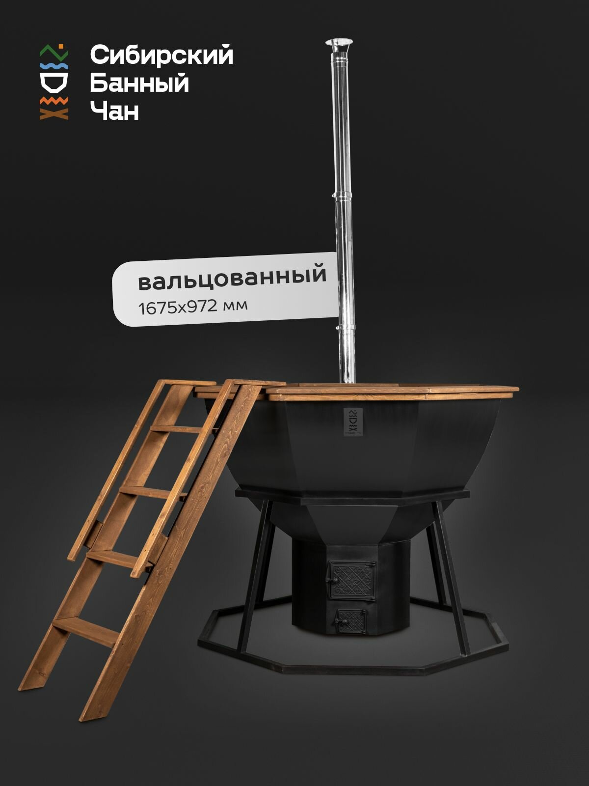Сибирский банный чан на 3 человека с печью на дровах, на опоре, окрашен в черный цвет интересное: