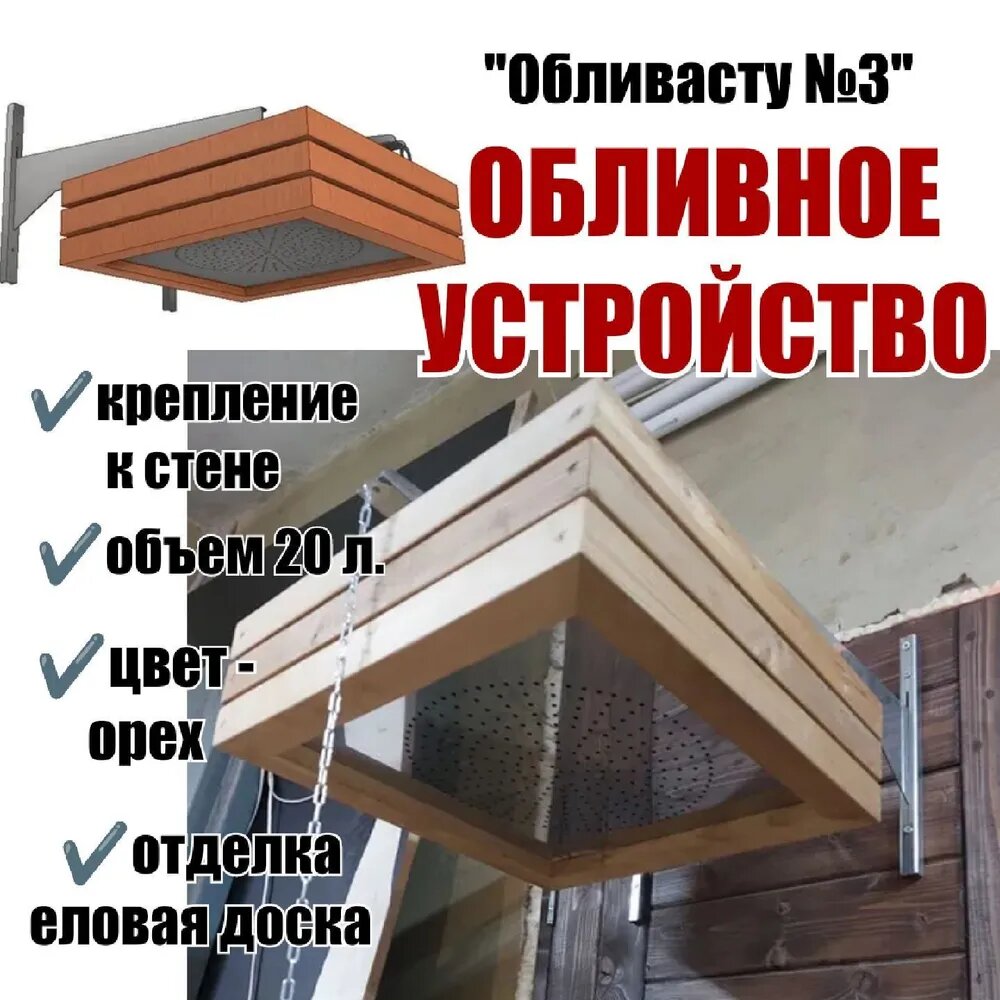 Обливное устройство "Обливасту №3" в дереве с креплением к стене 20 л ( отделка доска елка цвет орех интересное: