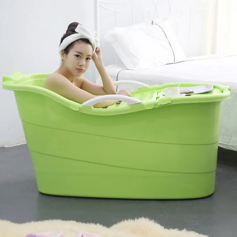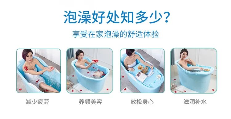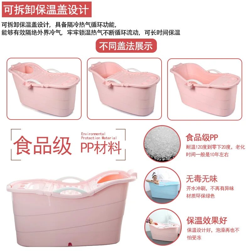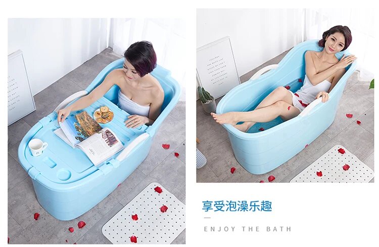 Adults Freestanding Bathtub Anti Slip Mat Foam Protection Bath Tub Plastic Bathtub Thickened Foldable Bathroom Supplies, 1.3m covered blue интересное: