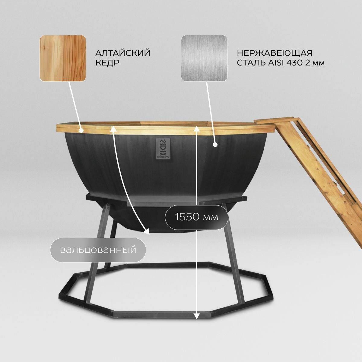 Сибирский банный чан 8 граней на опоре без печи сатинированный интересное: