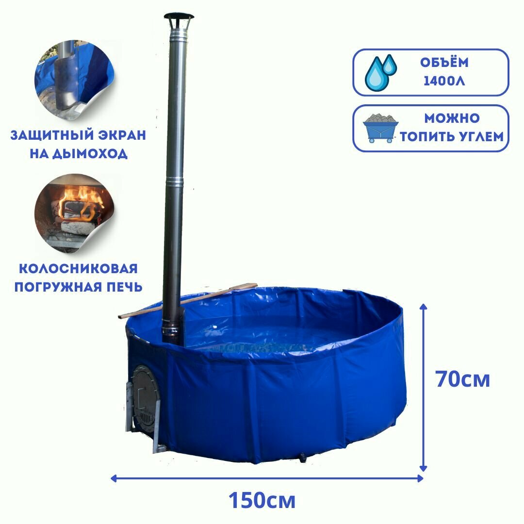 Банный чан Горыныч для 2х-4х человек стандартная лестница купель 1500 литров диаметр 170 см