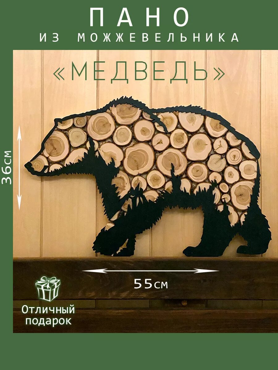 Панно "Медведь", можжевельник, 36 см x 55 см, декоративные элементы интересное: