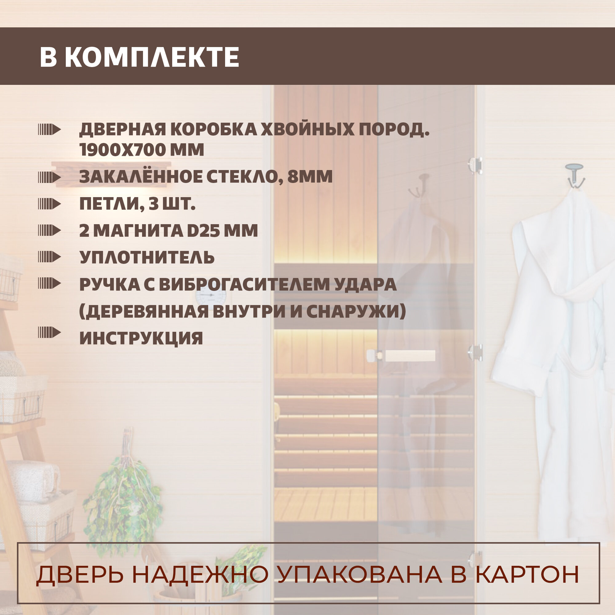 Дверь для бани "Теплый день". 1900х700 мм по коробке. Левая (петли слева). интересное: