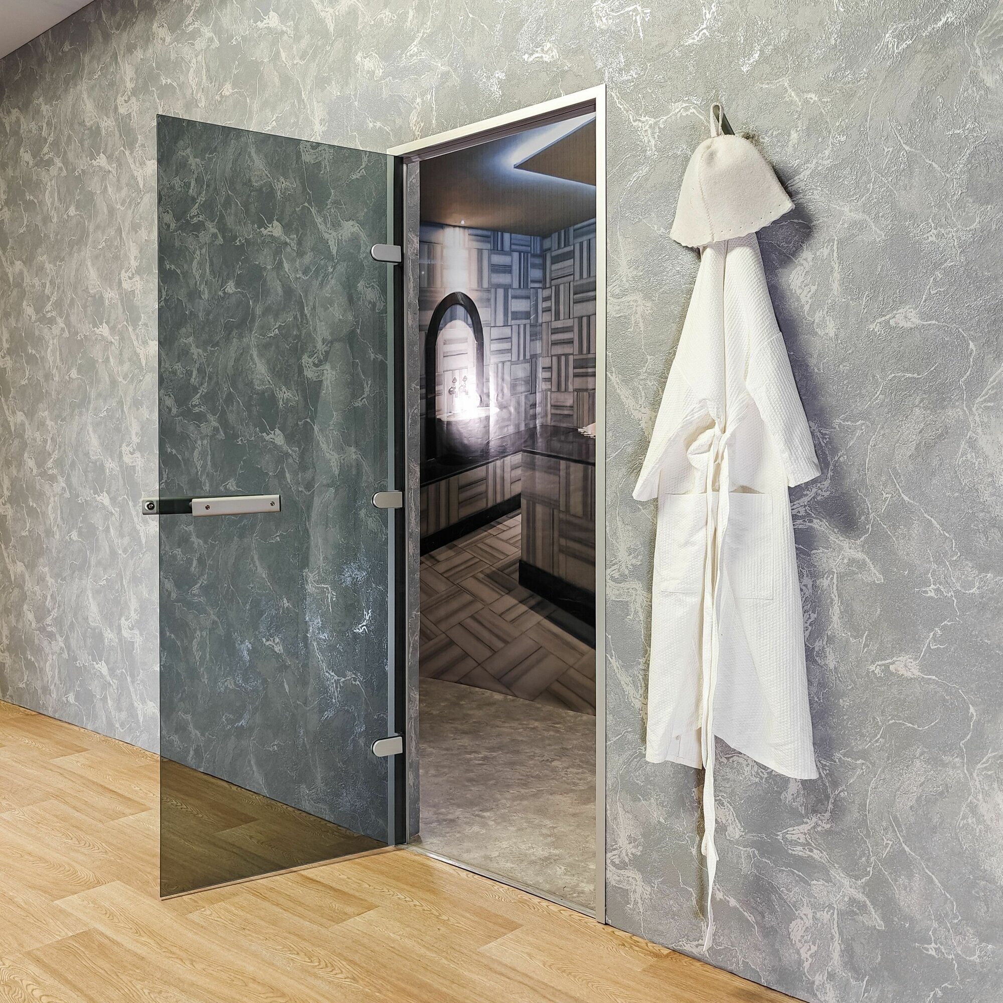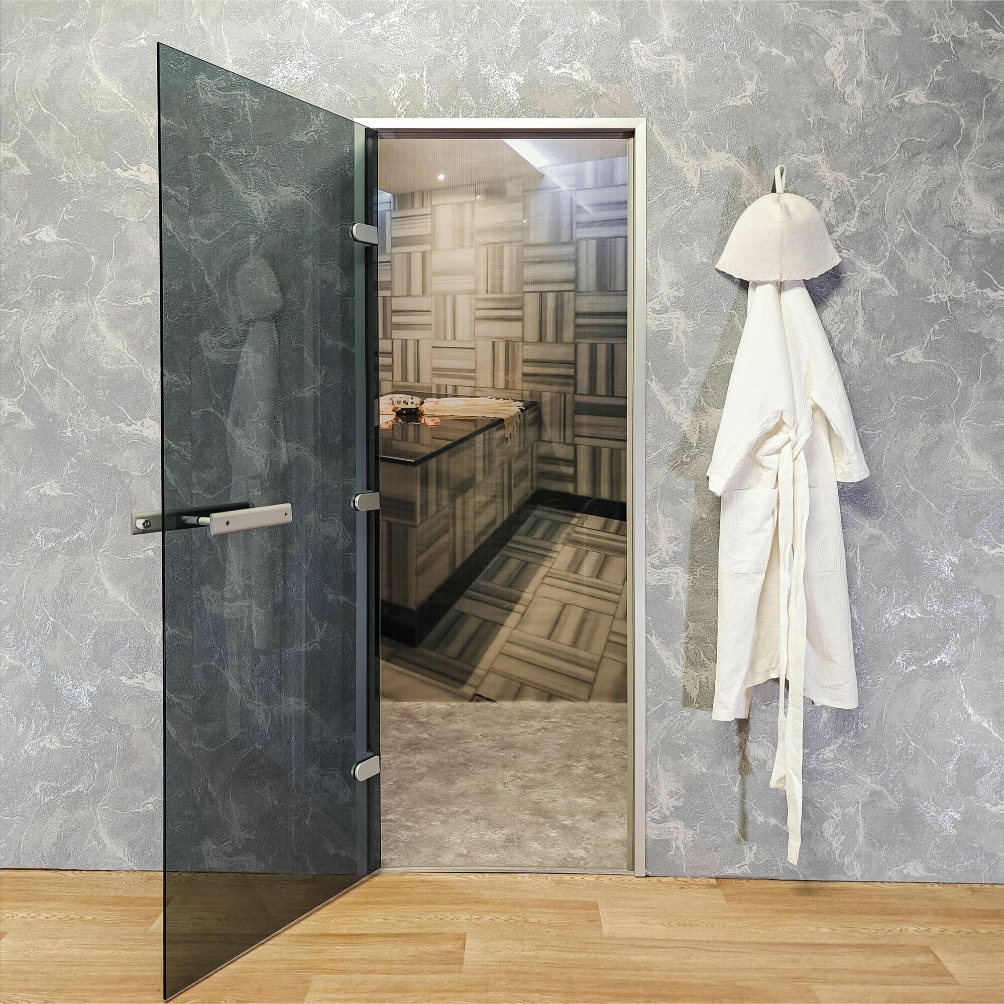Дверь для хамам и сауны Gratec Estri Premium, серое прозрачное закаленное стекло 8 мм, левое открывание интересное: