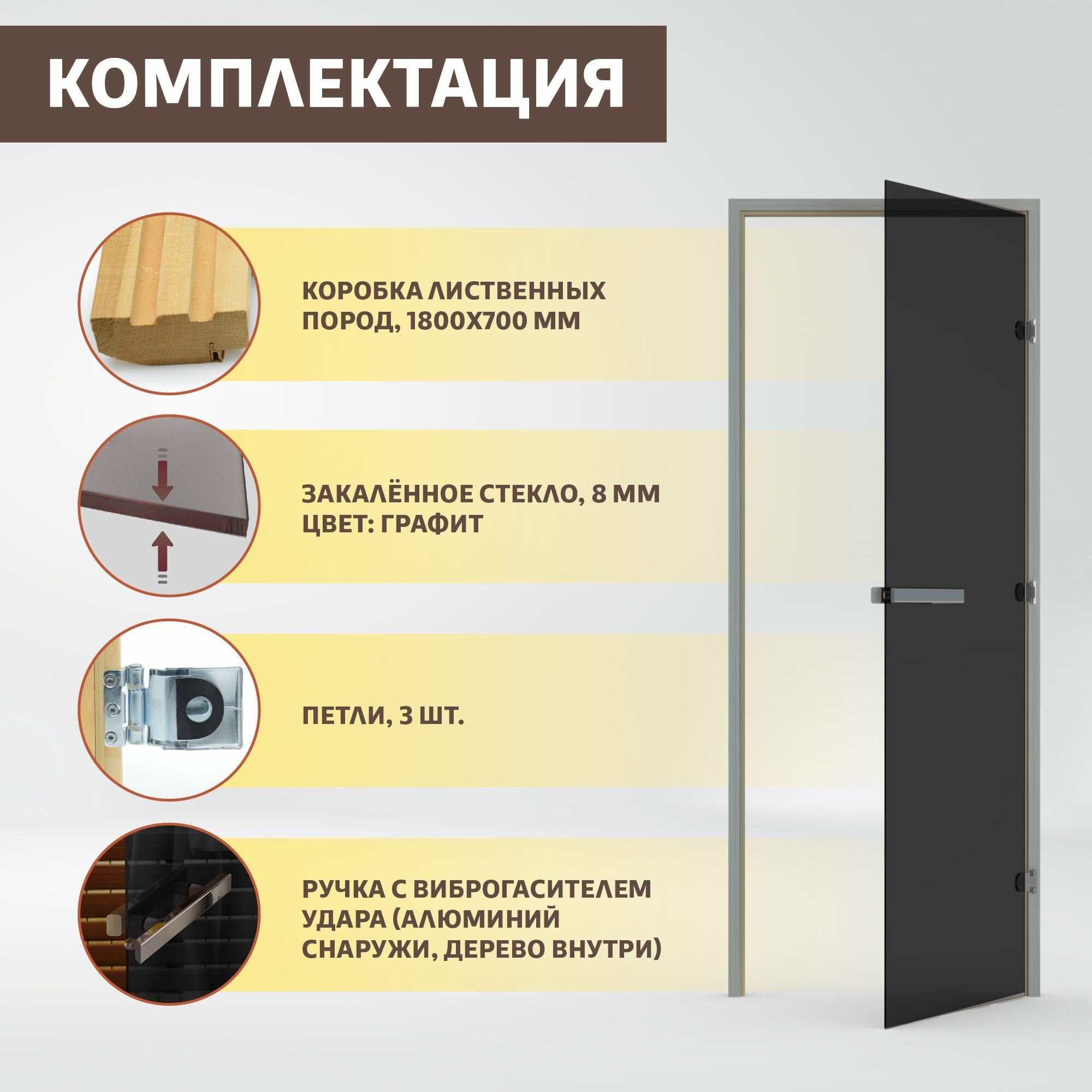Дверь для бани "Графит". 1800х700 мм по коробке. Левая (петли слева) интересное: