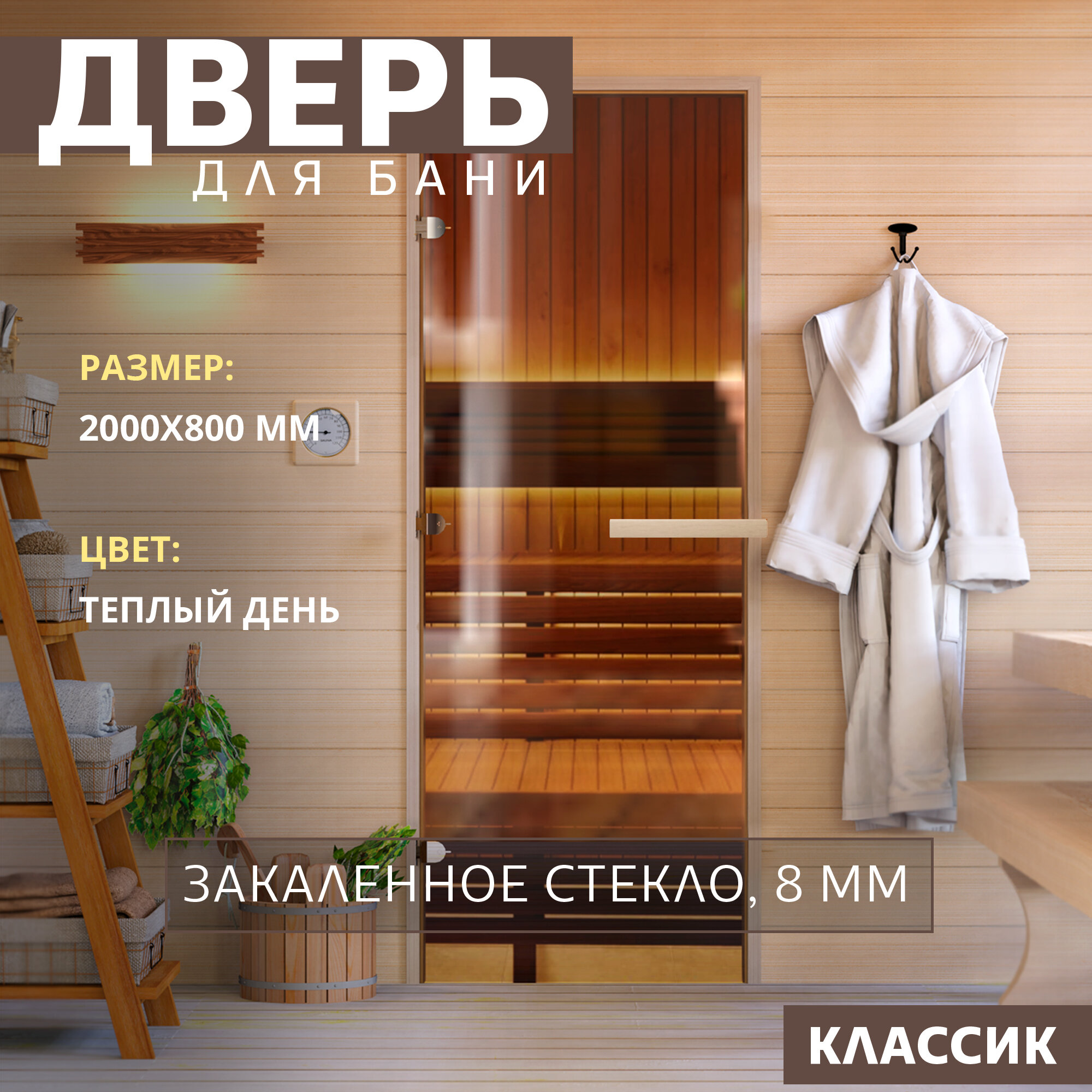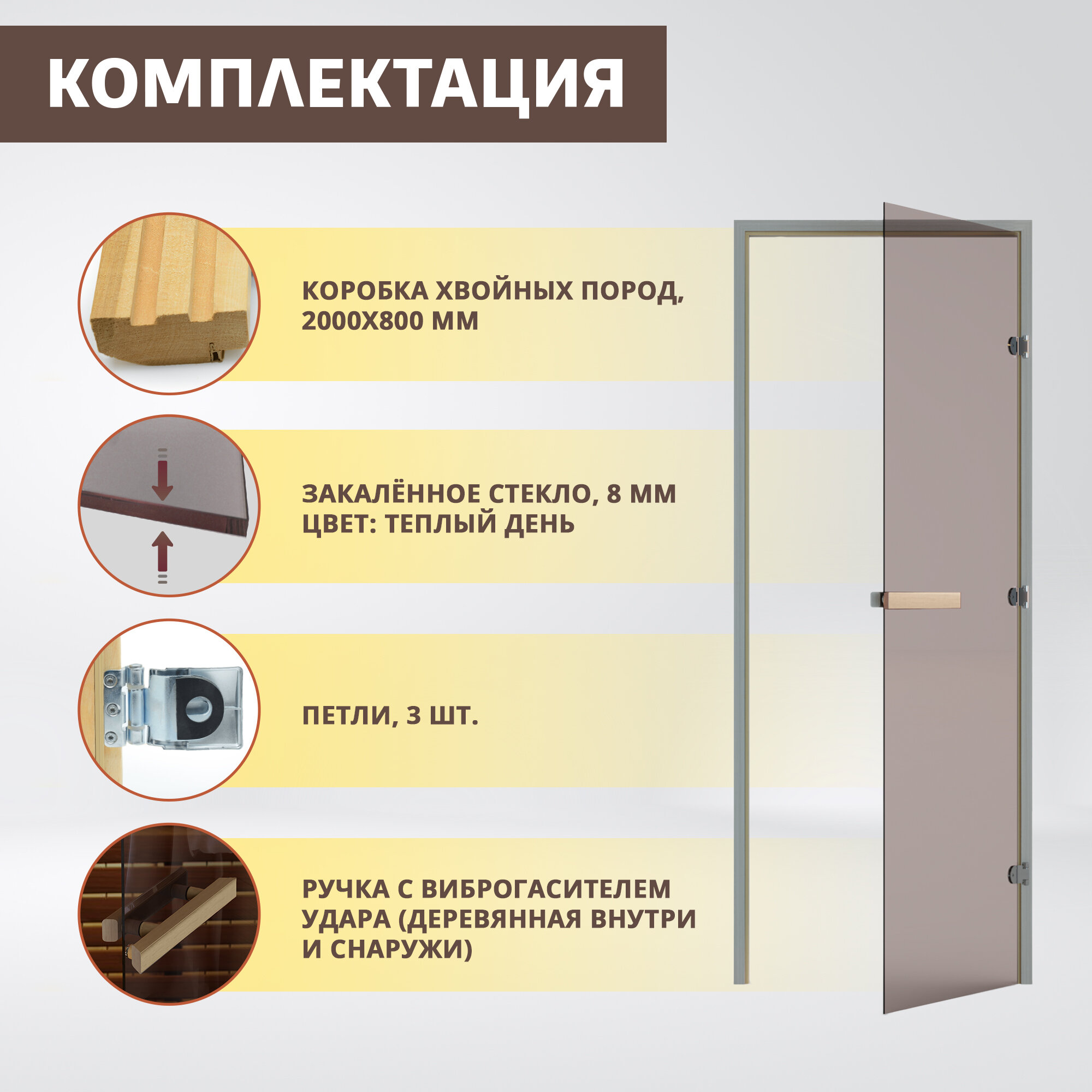 Дверь для бани "Теплый день". 2000х800 мм по коробке. Левая (петли слева). интересное: