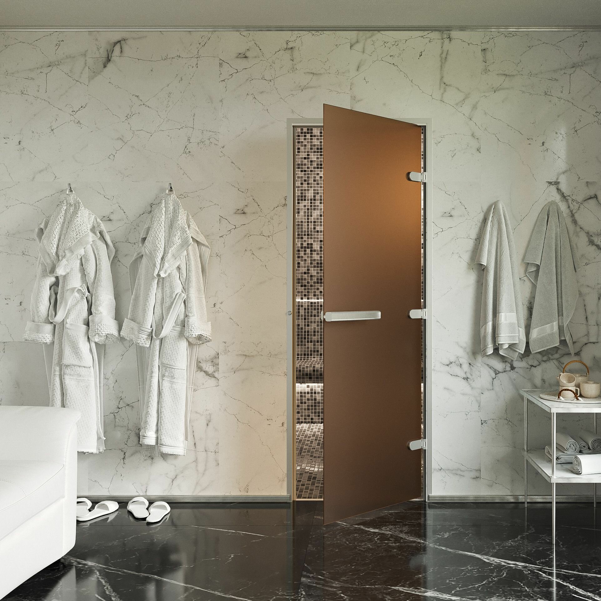 Дверь для хамам и сауны Gratec Estri Premium, бронза матовое закаленное стекло 8 мм, левое открывание