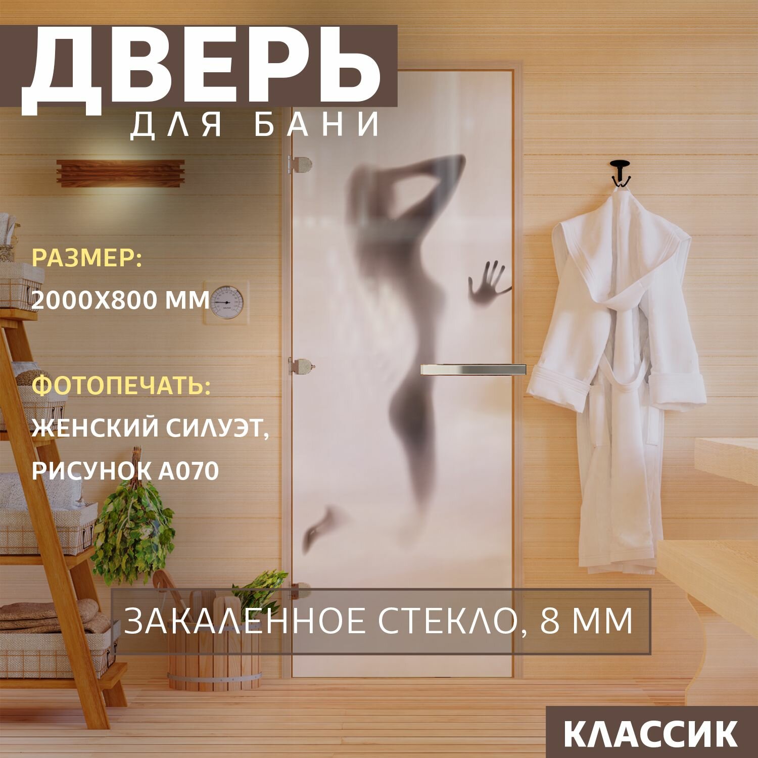 Дверь для бани "Фотопечать рисунок А070" 2000х800 мм. Левая (петли слева) интересное: