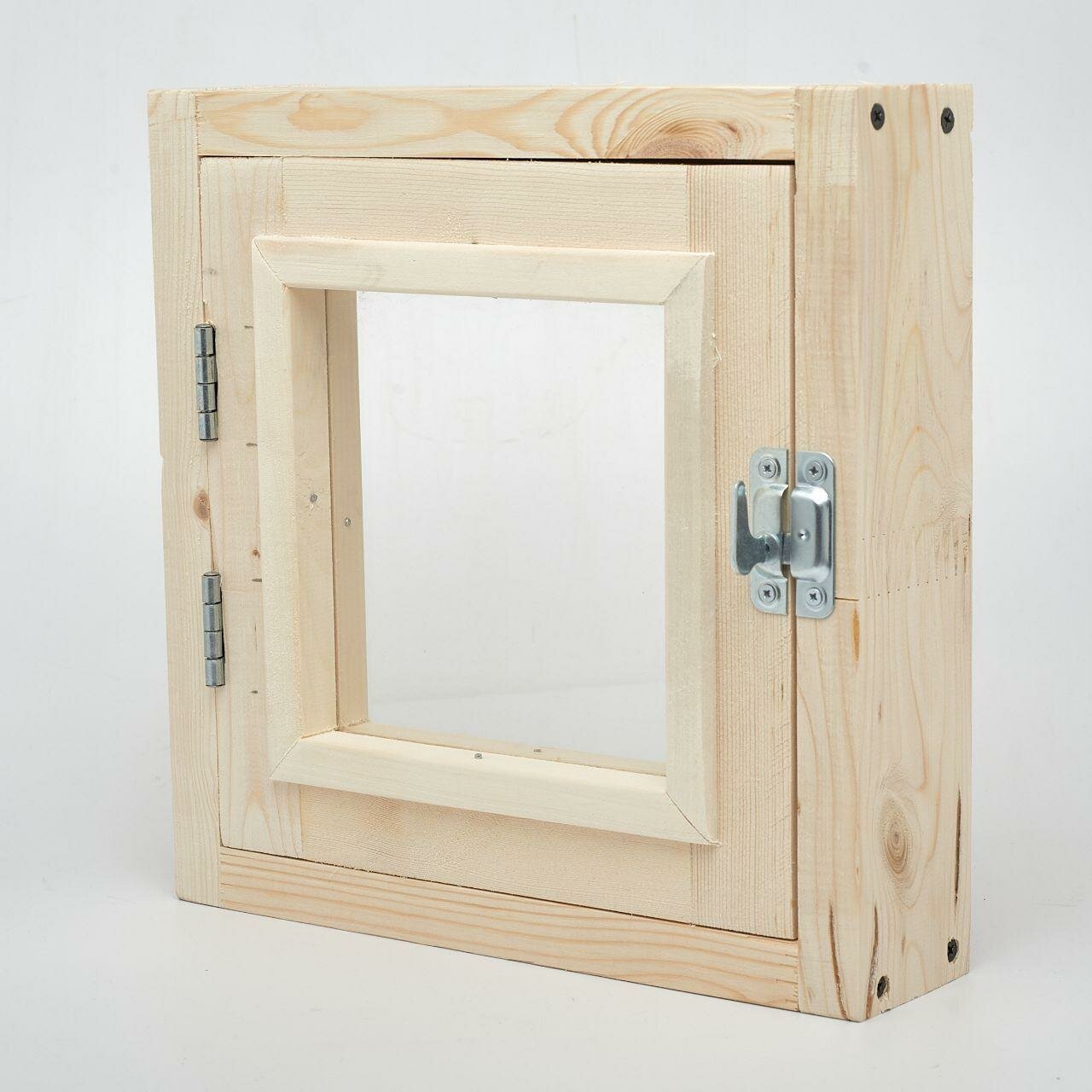 Форточка в баню 50х50 см, окно для бани, сауны, деревянное, одинарное остекление, прозрачное стекло, ручка, затвор и петли в комплекте
