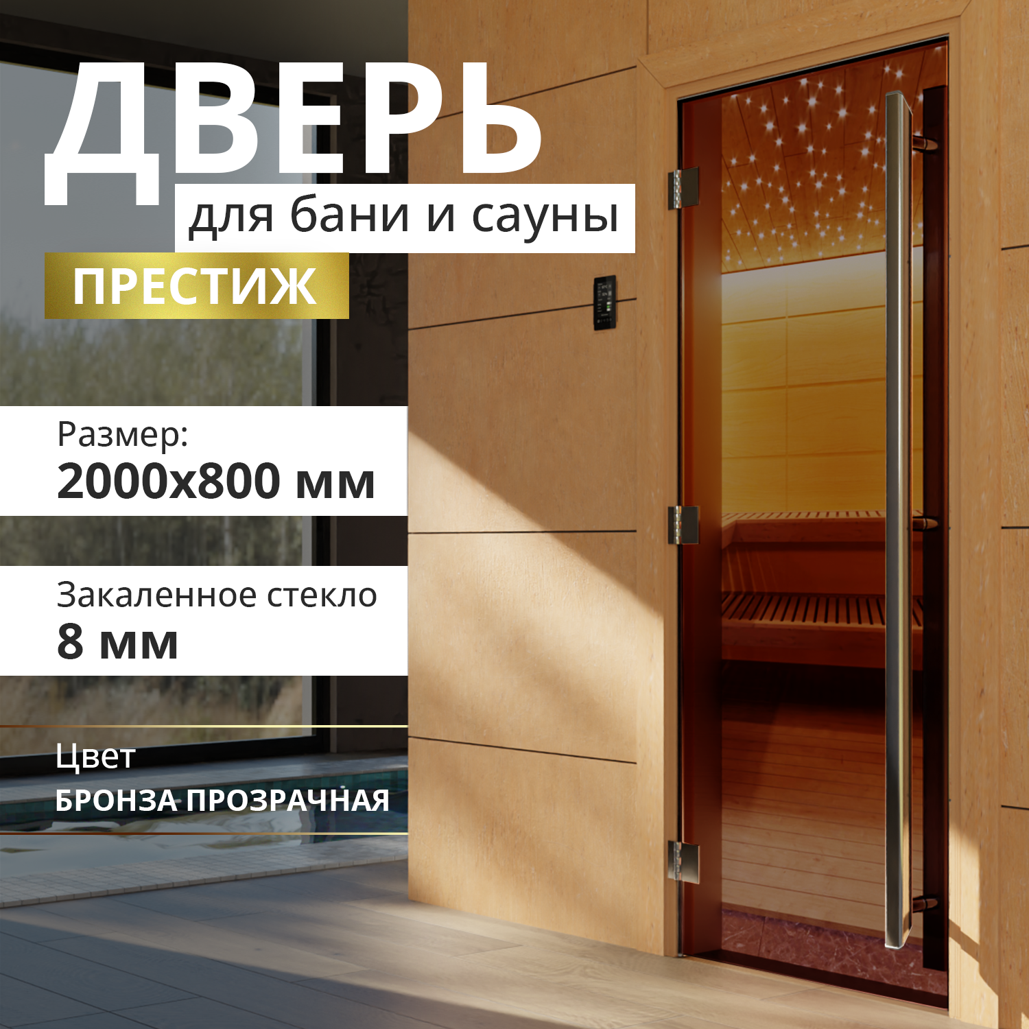 Дверь для бани "Престиж бронза" 2000х800 мм. Левая (петли слева) интересное: