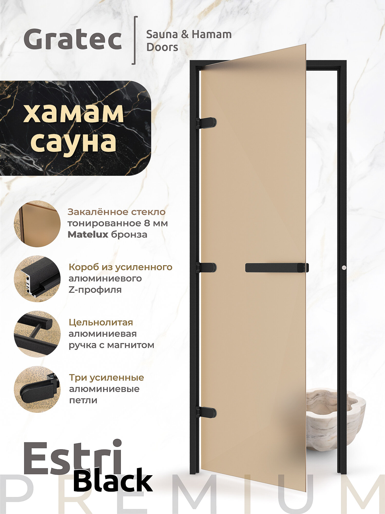 Ниже Вы можете прочитать отзывы на Дверь для хамам и сауны Gratec Estri BK Premium, чёрные короб и фурнитура, бронза матовое закаленное стекло 8 мм, левое открывание, ознакомится с подробными характеристиками, посмотреть интересные обзоры и фотографии на Дверь для хамам и сауны Gratec Estri BK Premium, чёрные короб и фурнитура, бронза матовое закаленное стекло 8 мм, левое открывание.