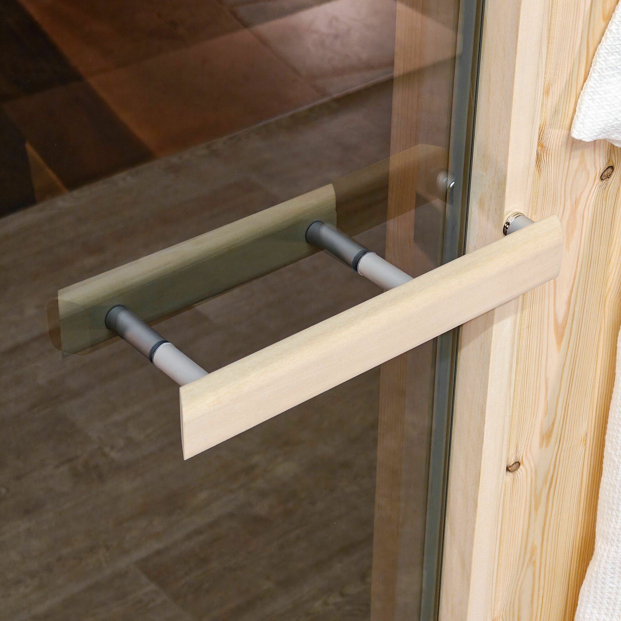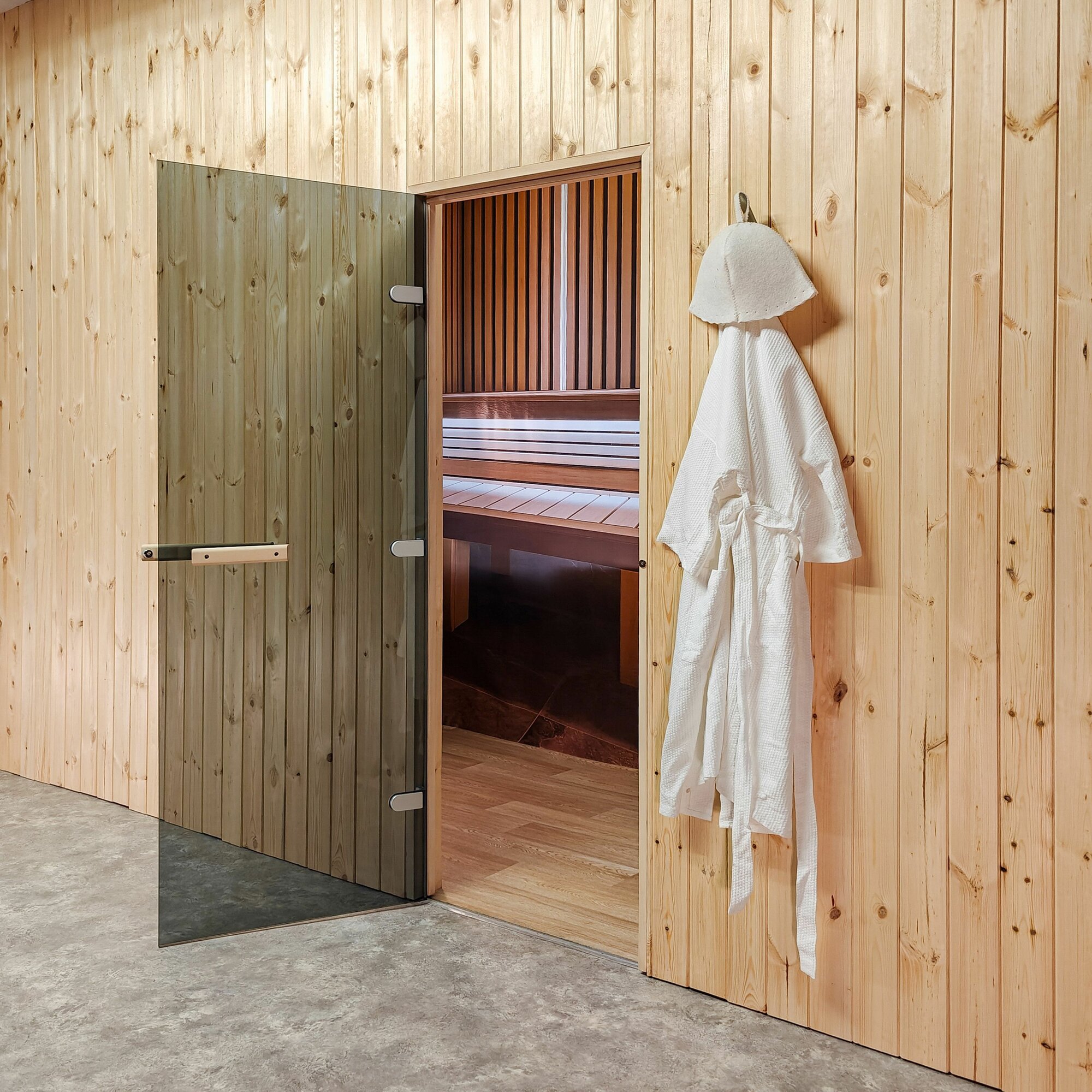 Дверь для бани и сауны Gratec Kati, короб из массива липы, серое прозрачное закаленное стекло 8 мм, левое открывание интересное: