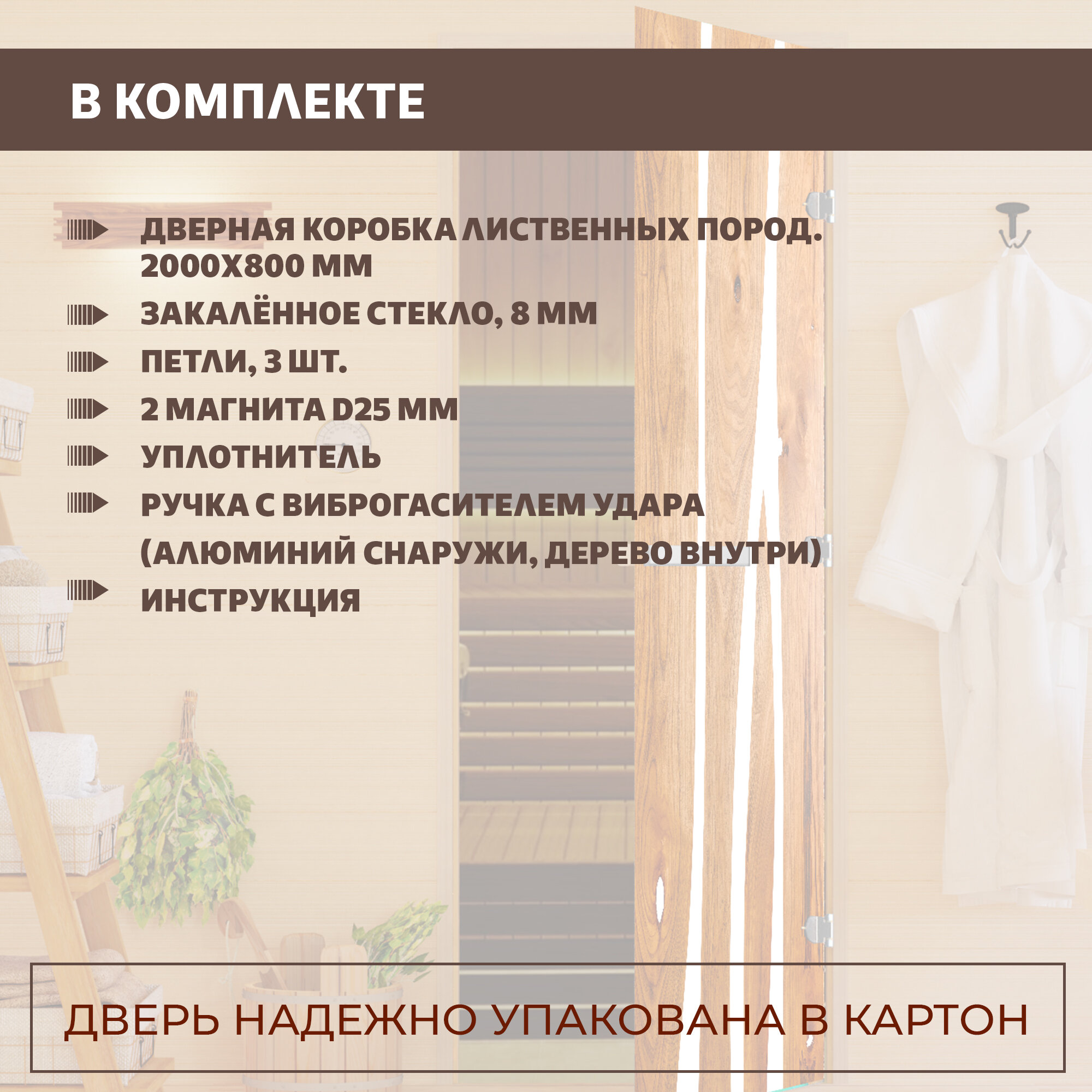 Дверь для сауны Aquaviva, 1890х690 мм, стекло 6 мм (левая), цена - за 1 шт