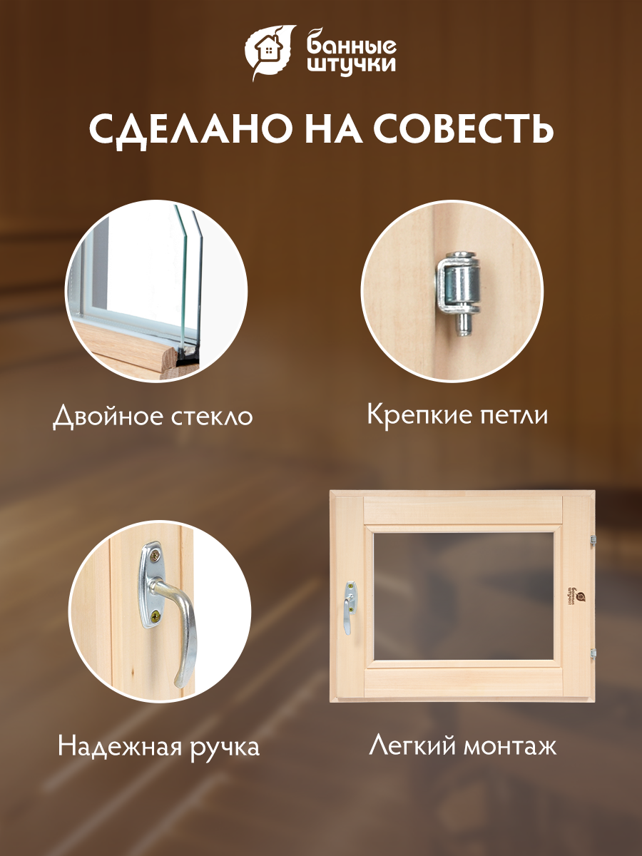 Форточка в парную, стеклопакет, 0,4х0,5 м, с ручкой, затвором, петлями, липа Класс Б "Банные штучки" интересное: