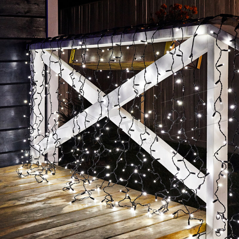 Светодиодная гирлянда Neon-night "Дождь" 2х1.5 м, 360 белых светодиодов, постоянное свечение, черный провод