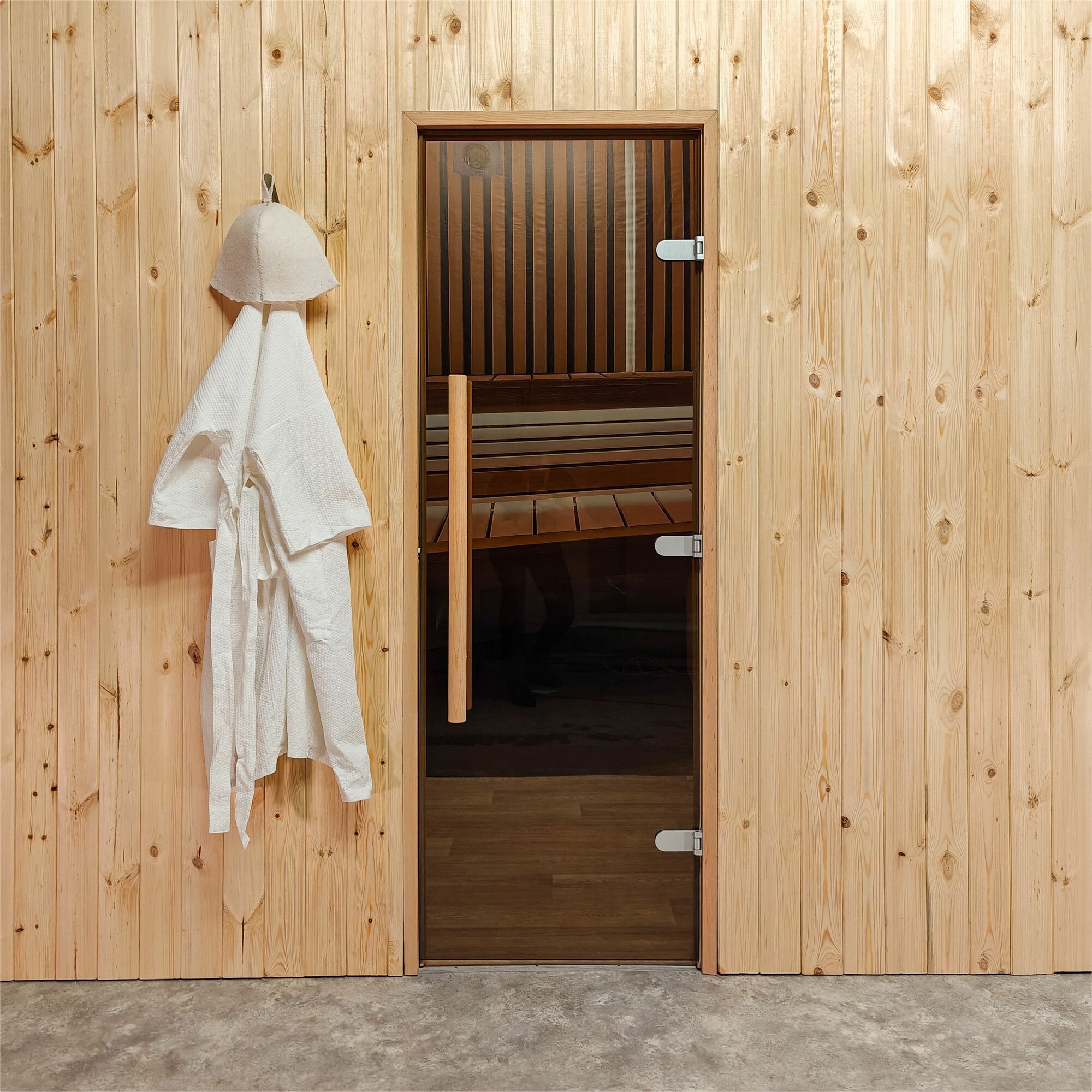 Купить Дверь для бани и сауны Gratec Teia Premium, короб из массива бука, закаленное стекло 8 мм бронза, правое открывание