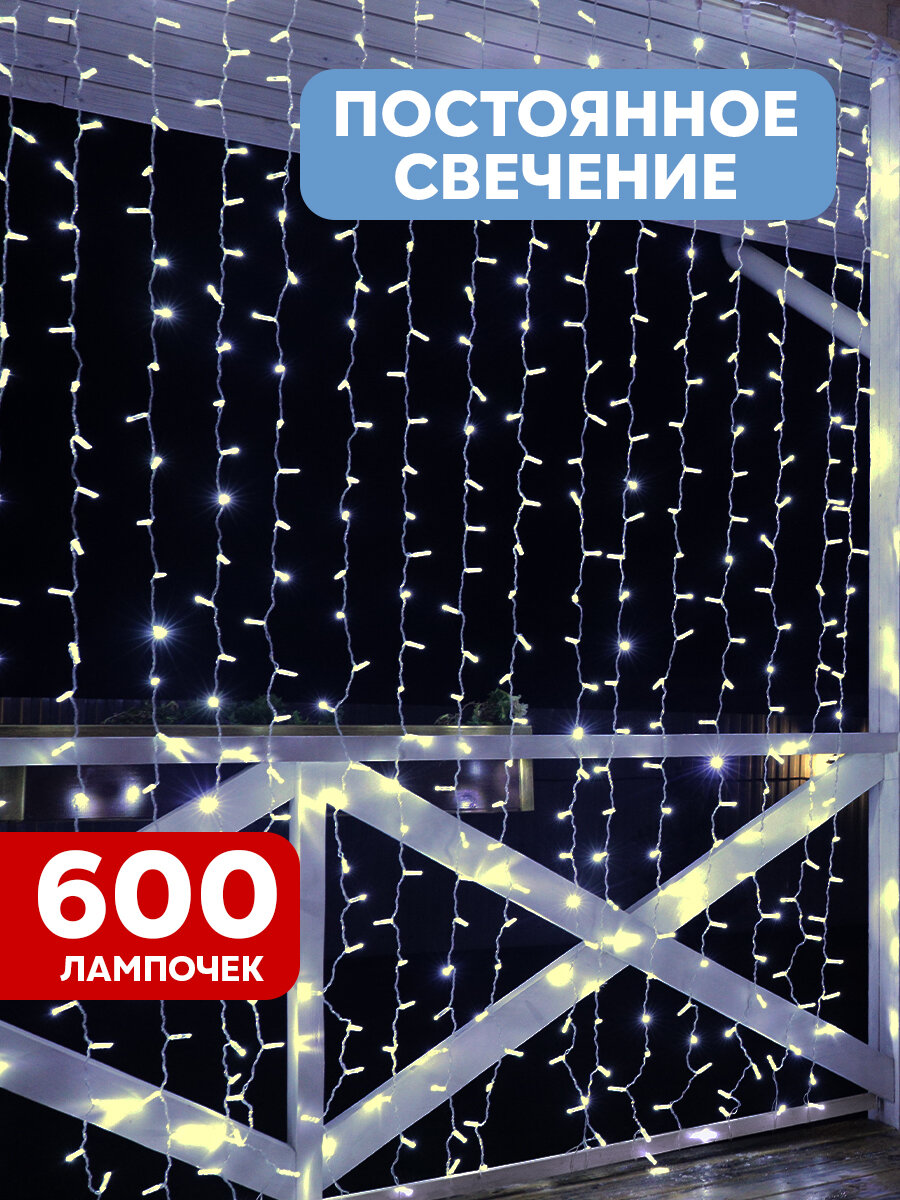 Купить Гирлянда "Светодиодный Дождь" 2х3м, постоянное свечение, белый провод, 230 В, диоды Белые, 760 LED 2 .