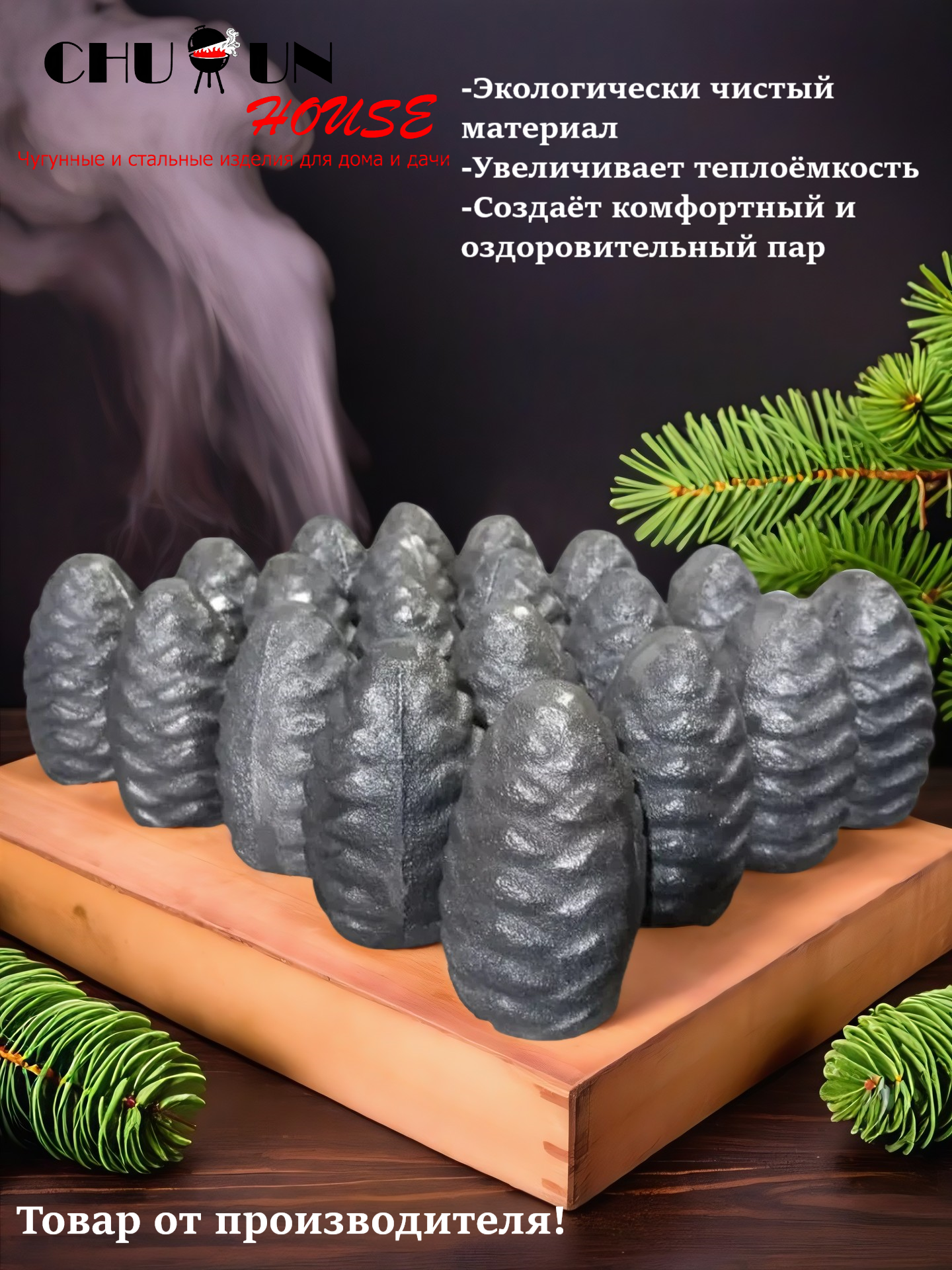 Купить Камни для бани "Чугунные Шишки", чугун, шлифованные, серые, 7кг