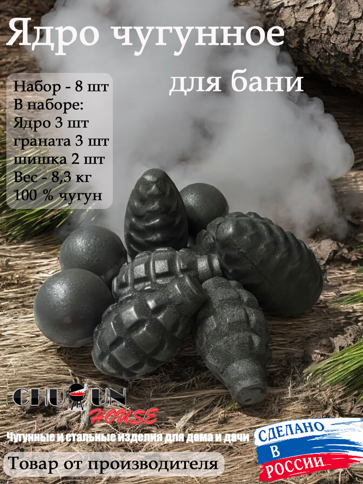 Ядра чугунные CHUGUN HOUSE, для бани, круглые, диаметр 6 см, вес 2,4 кг