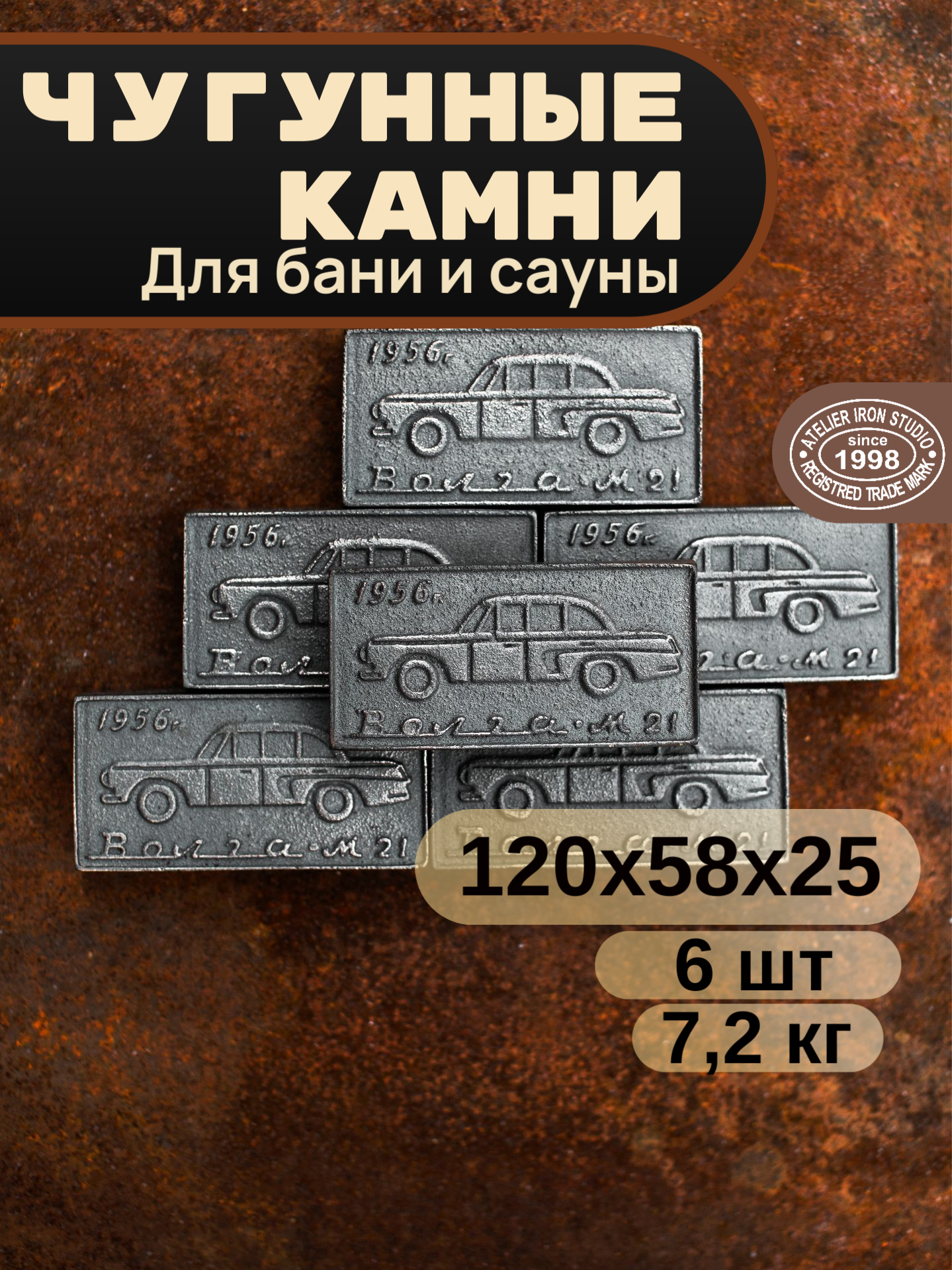 Камни для бани, AIS, "Волга М-21", чугунные, 120х58х25мм, 6 шт интересное: