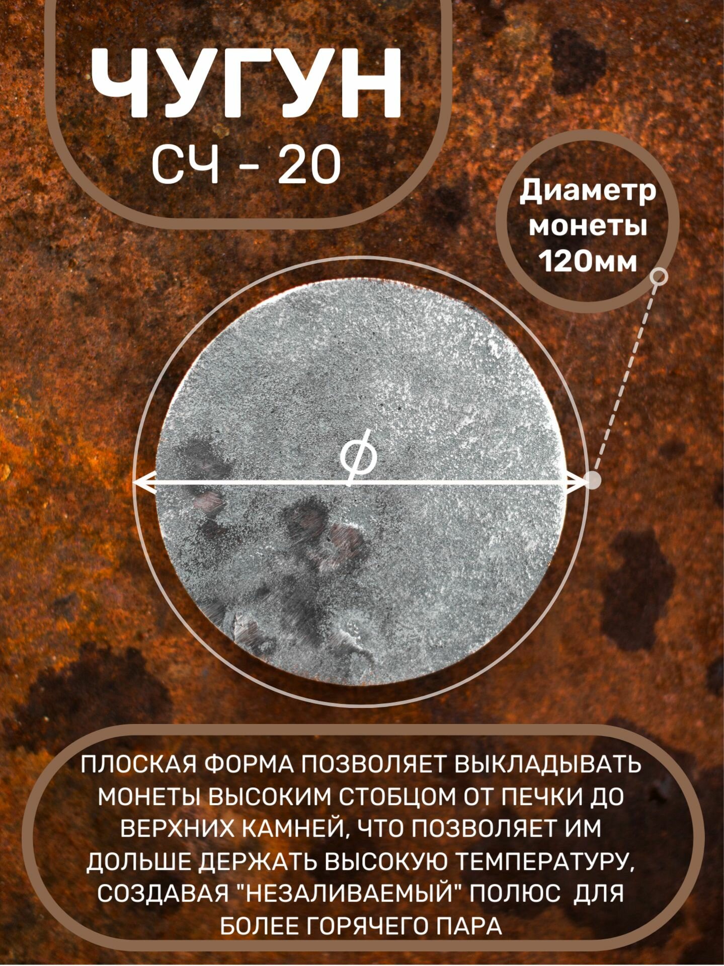 Камни для бани "12 рублей на серебро", чугун, диаметр 12см, в коробке 1 шт интересное: