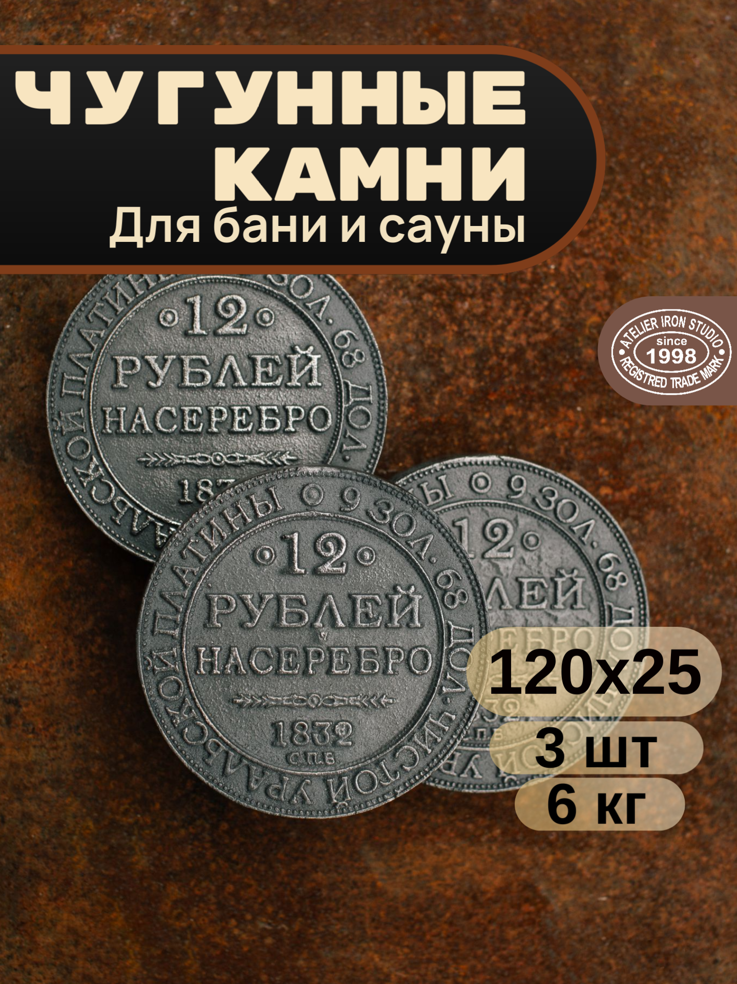 Камни для бани AIS "12 рублей на серебро", чугун, Диаметр-12см, в коробке 3шт интересное: