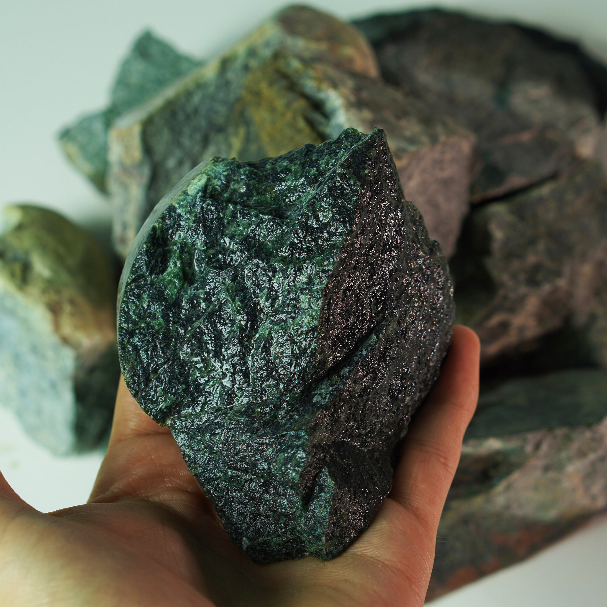 Камни для бани Жадеит некалиброванный колотый (ведро 10 кг)
