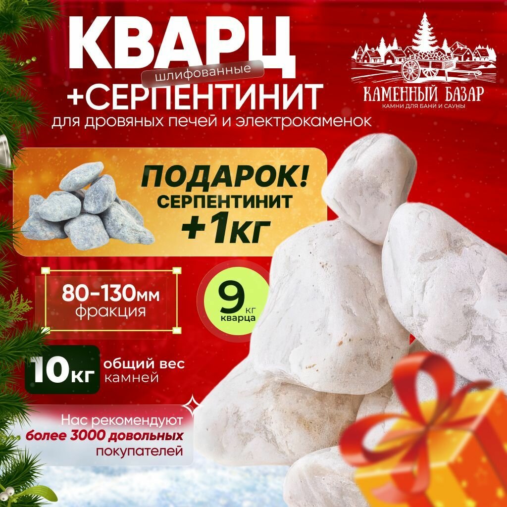 Банный набор Кварц шлифованный 9 кг. (фракция 80-130) + Серпентинит шлифованный 1 кг. (фракция 80-130 мм.) в подарок! интересное: