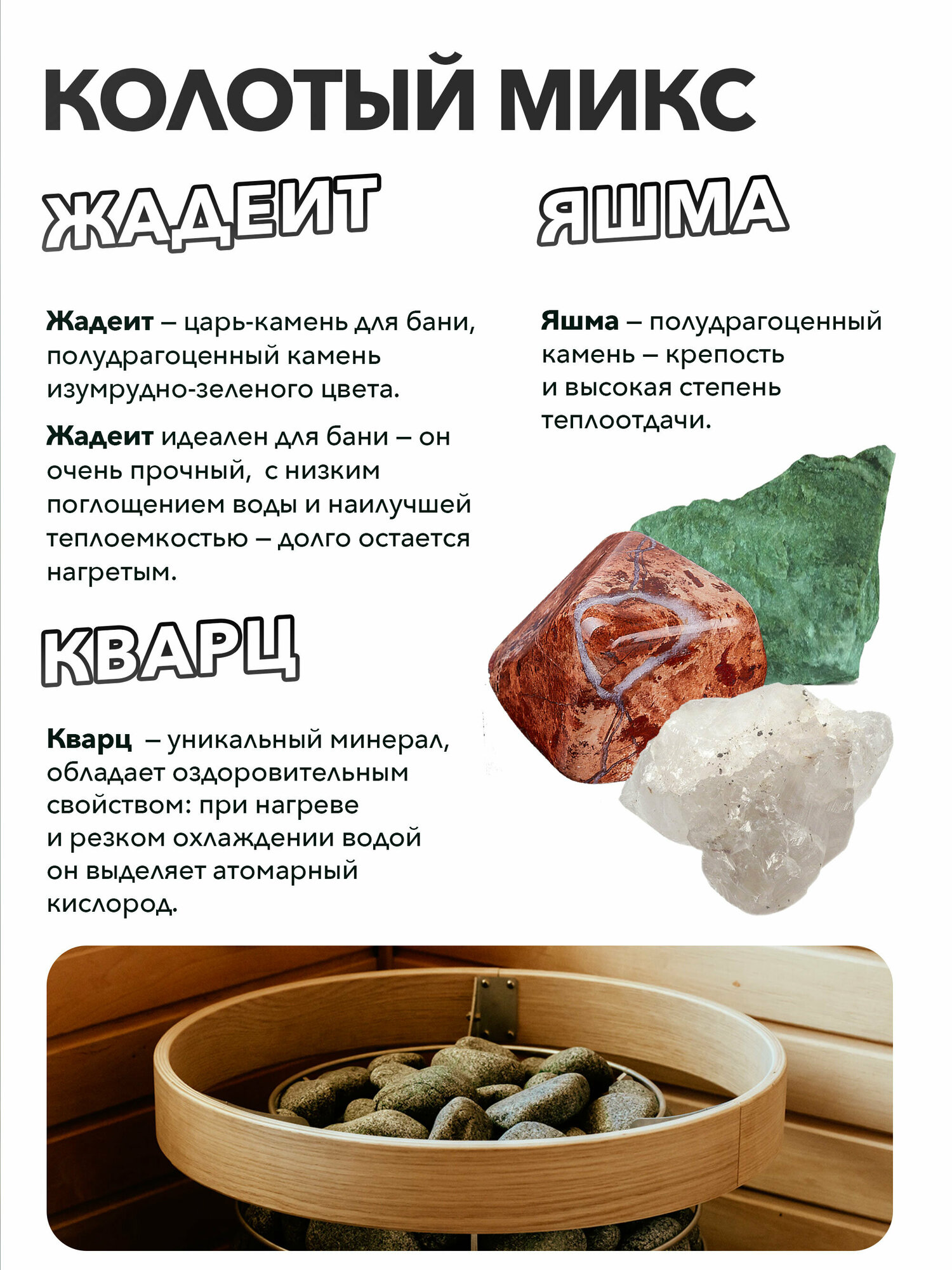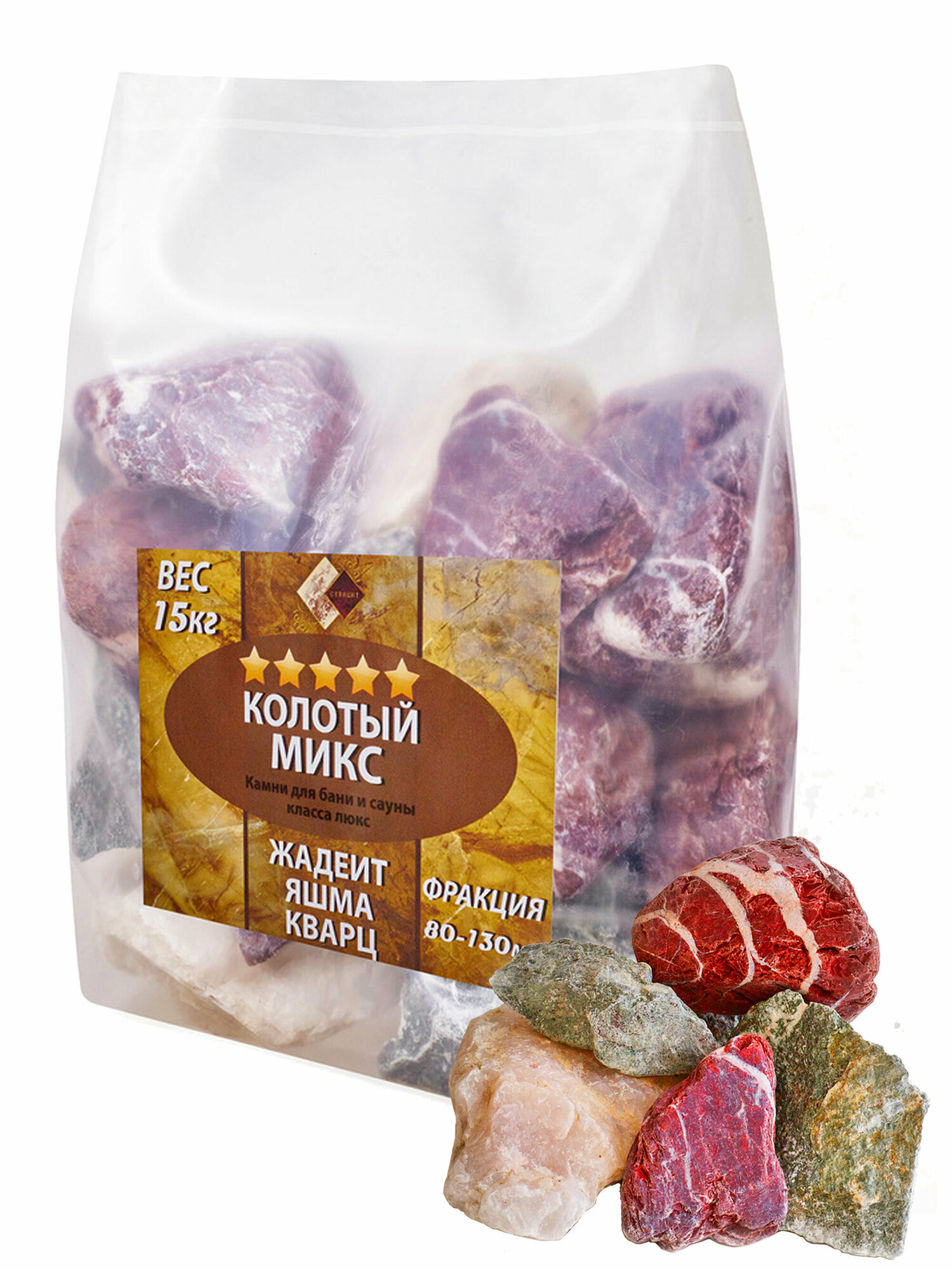 Камни для бани "Колотый микс" (Кварц, Жадеит, Яшма) 15 кг (фракция 80-130мм) интересное: