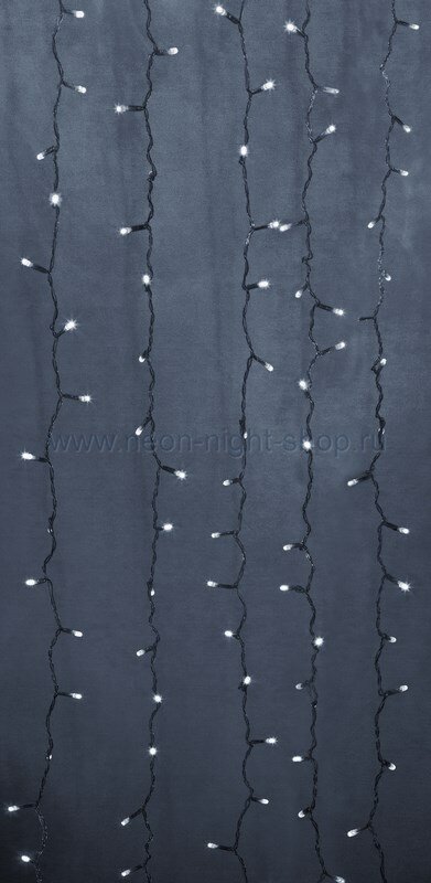 Светодиодная гирлянда Neon-night "Дождь" 2х1.5 м, 360 белых светодиодов, постоянное свечение, черный провод