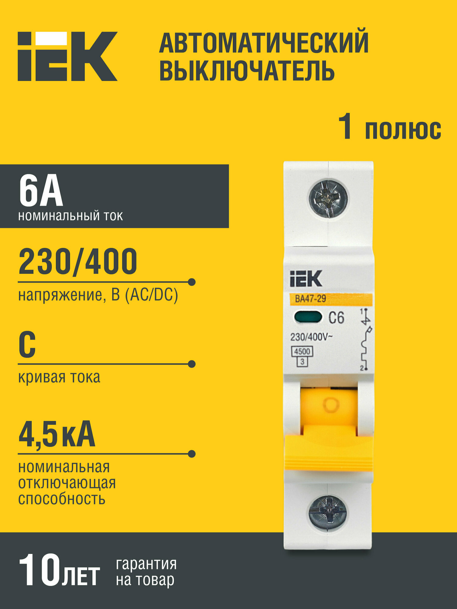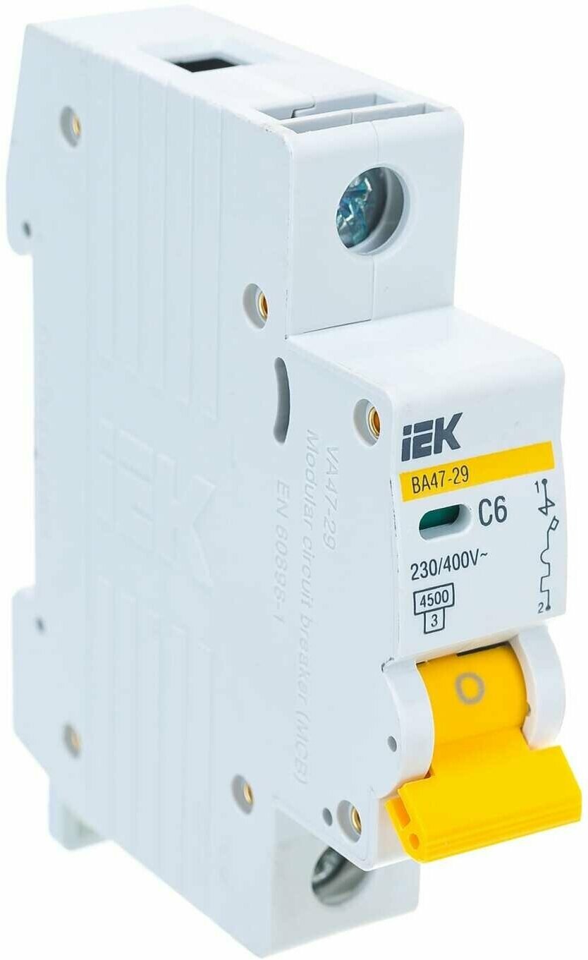 Выключатель IEK автоматический однополюсный 6А С ВА47-29, 4.5кА (арт. MVA20-1-006-C)