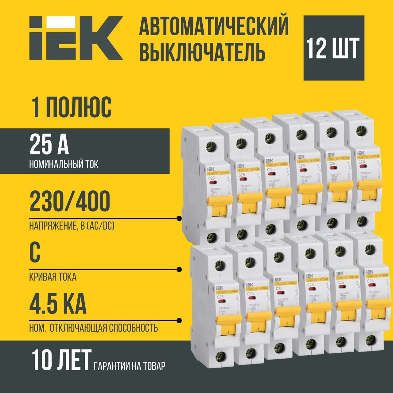 Выключатель IEK автоматический однополюсный 6А С ВА47-29 4.5кА (арт. MVA20-1-006-C) комплект 12 шт