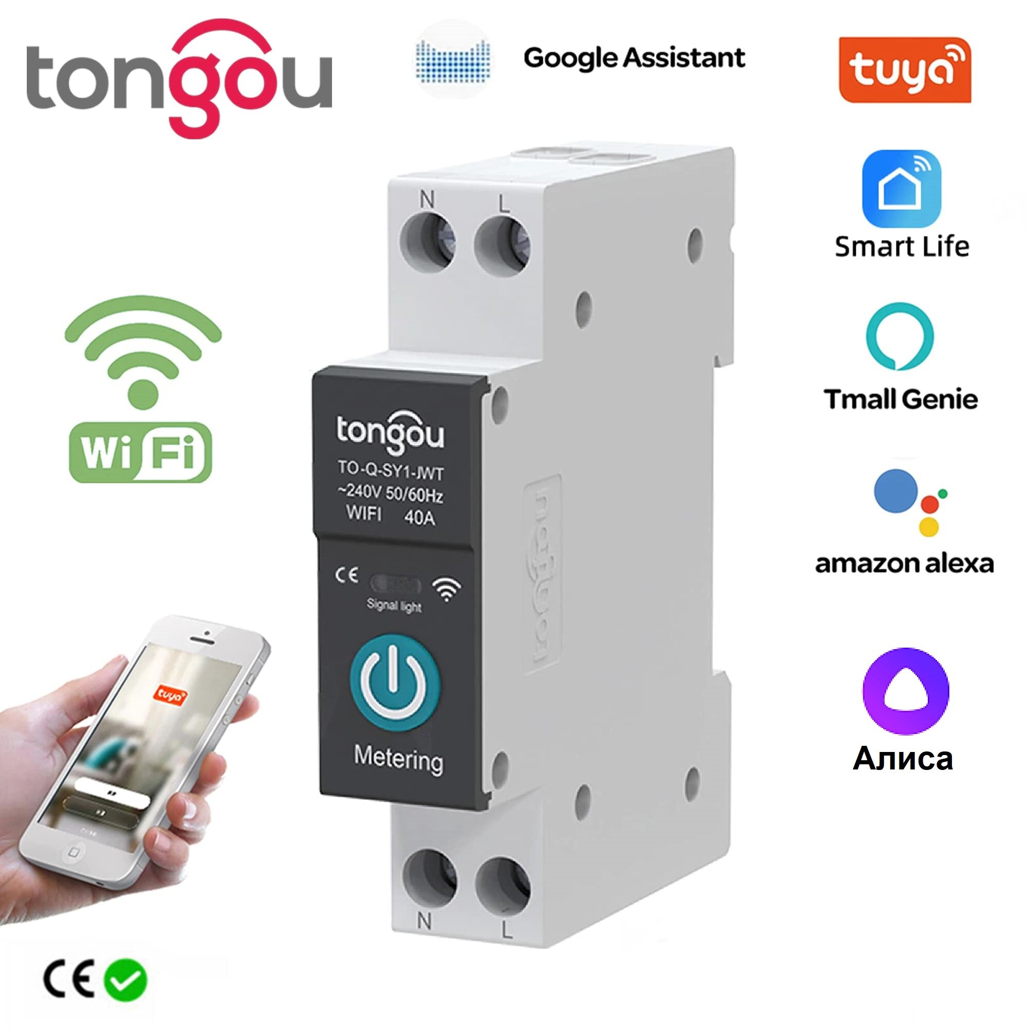 Умный автоматический выключатель TONGOU TO-Q-SY2-163JWT, 1-63A adjustable