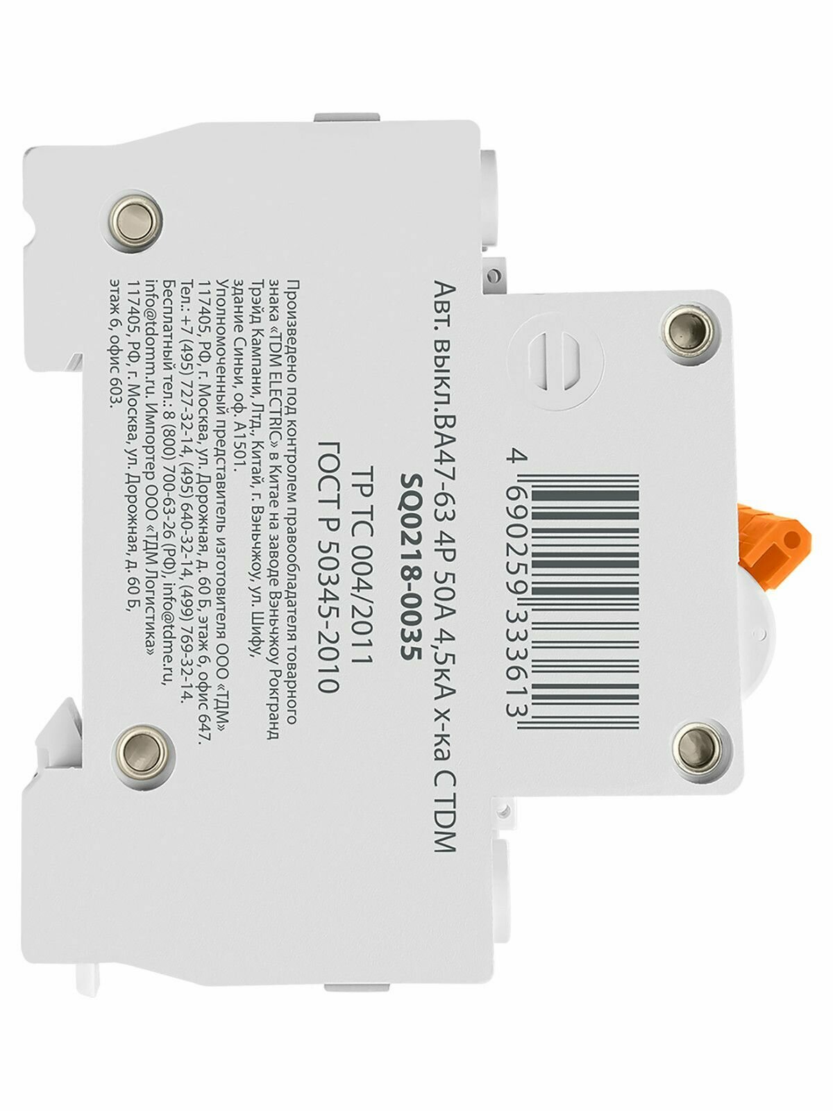 Автоматический выключатель ВА47-63 4Р 50А 4,5 кА тип С TDM Electric интересное: