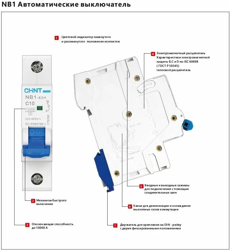 Автоматический выключатель CHINT, NXB-63 1P C 25A, 6 кA, однополюсный интересное: