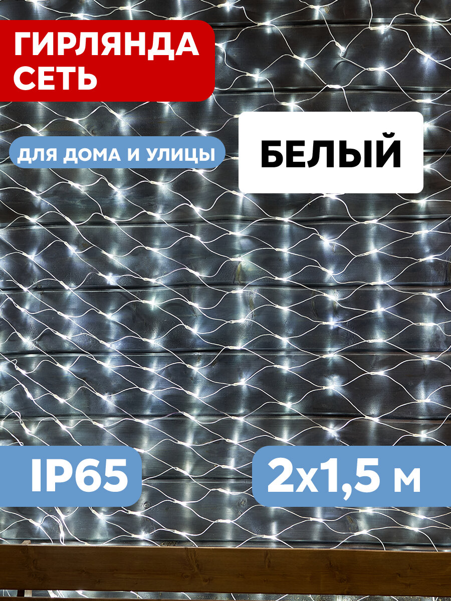 Уличная светодиодная гирлянда Neon-Night "Сеть", 215-045, 8 режимов, белое свечение, 2х1.5 м