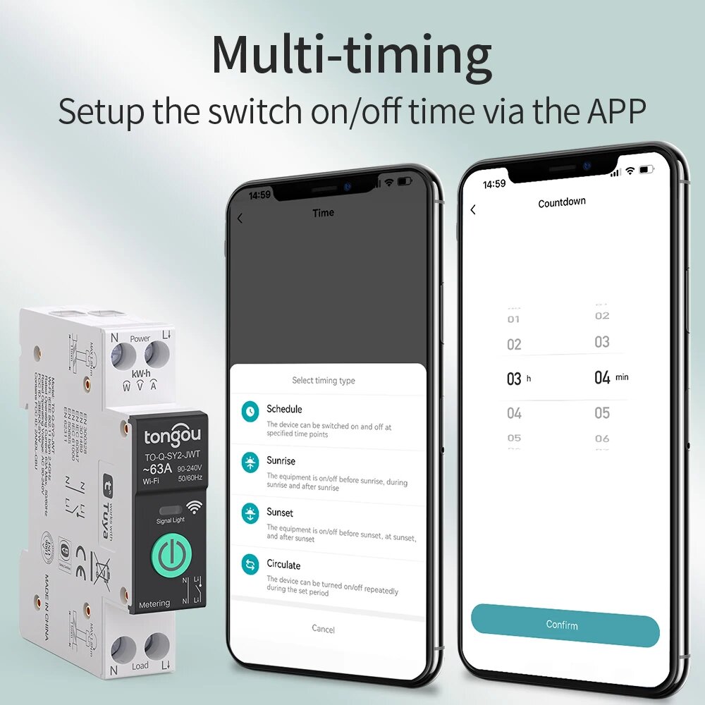 Умный автоматический выключатель TONGOU TO-Q-SY2-163JWT, 1-63A adjustable