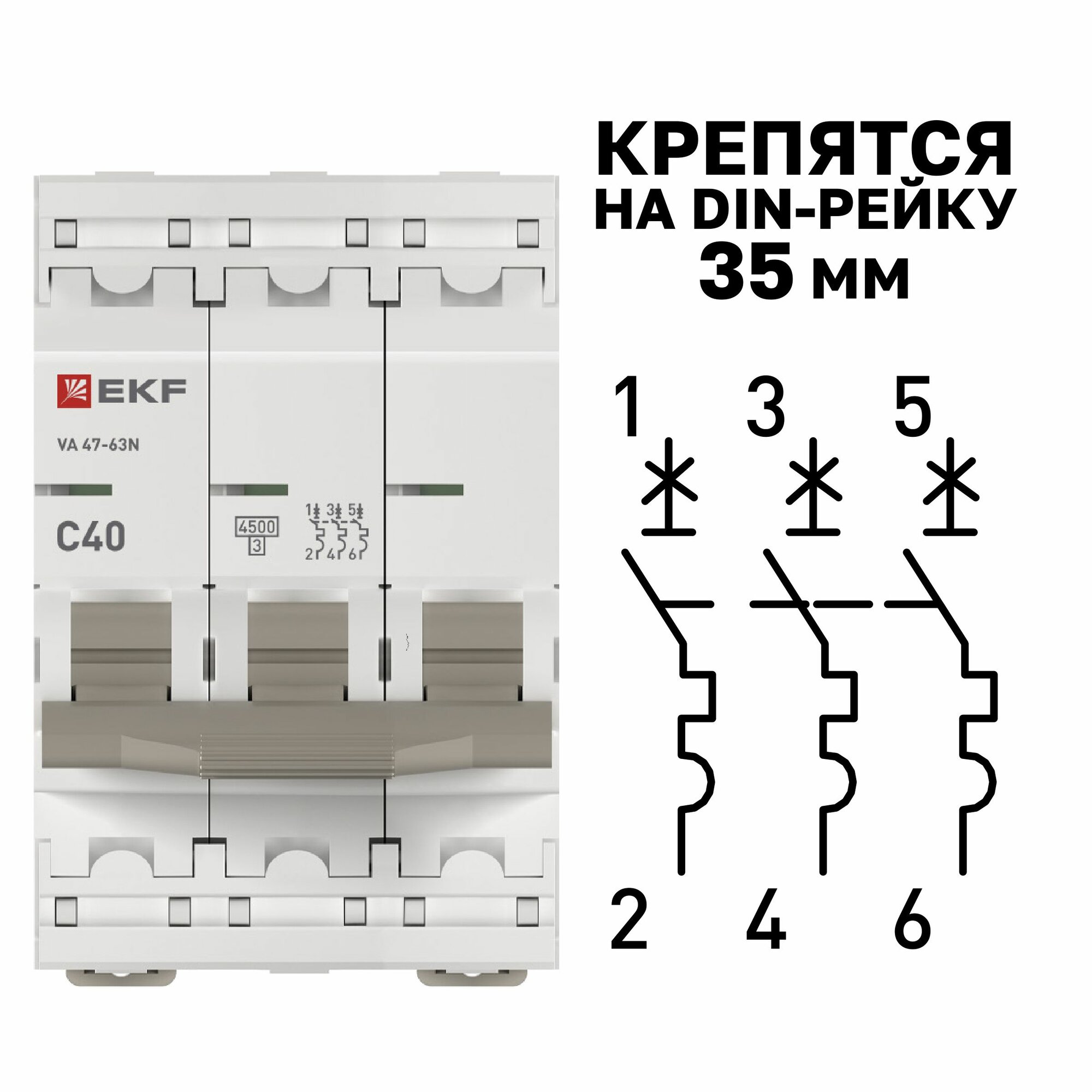 Автомат 6А, тип C, трехполюсный 3P, 4,5kA, cо встроенной опломбировкой клемм EKF PROXIMA ВА 47-63N (Автоматический выключатель C6)
