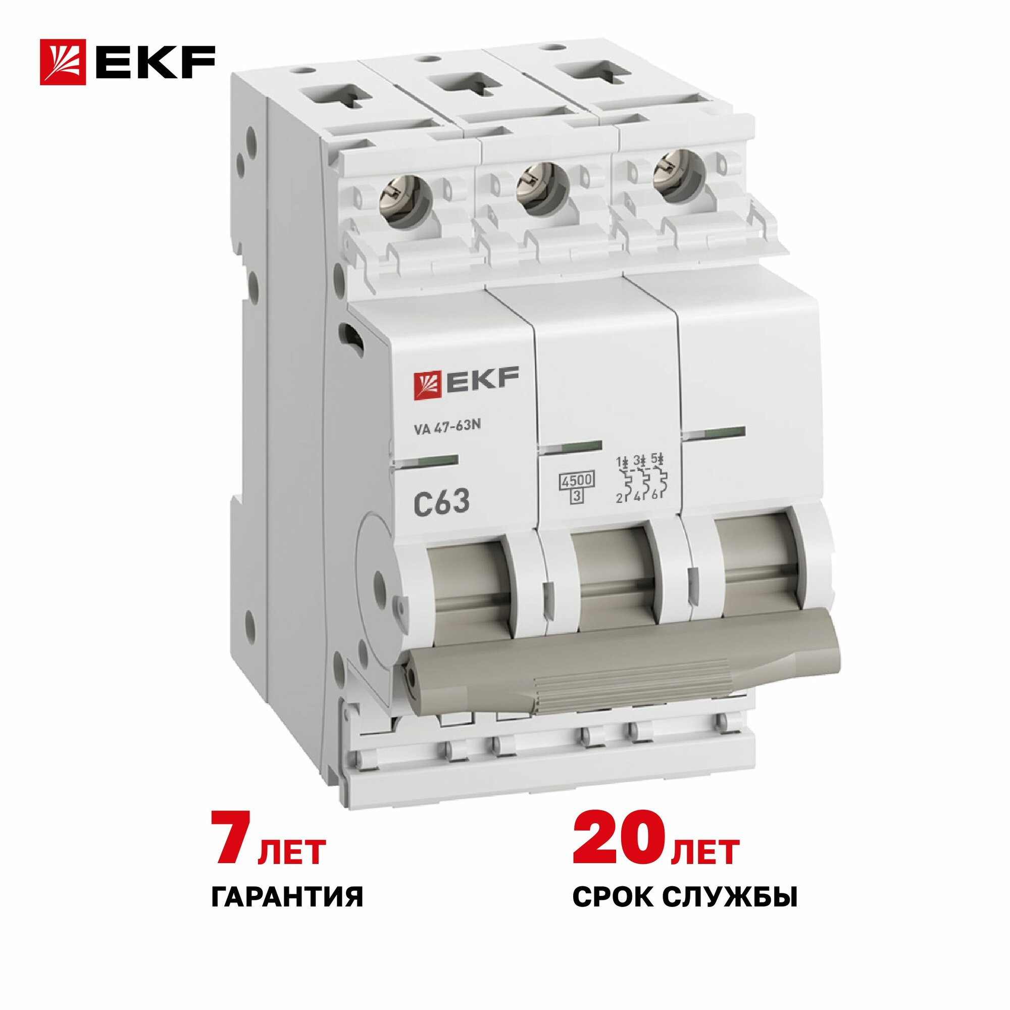Автомат 6А, тип C, трехполюсный 3P, 4,5kA, cо встроенной опломбировкой клемм EKF PROXIMA ВА 47-63N (Автоматический выключатель C6)