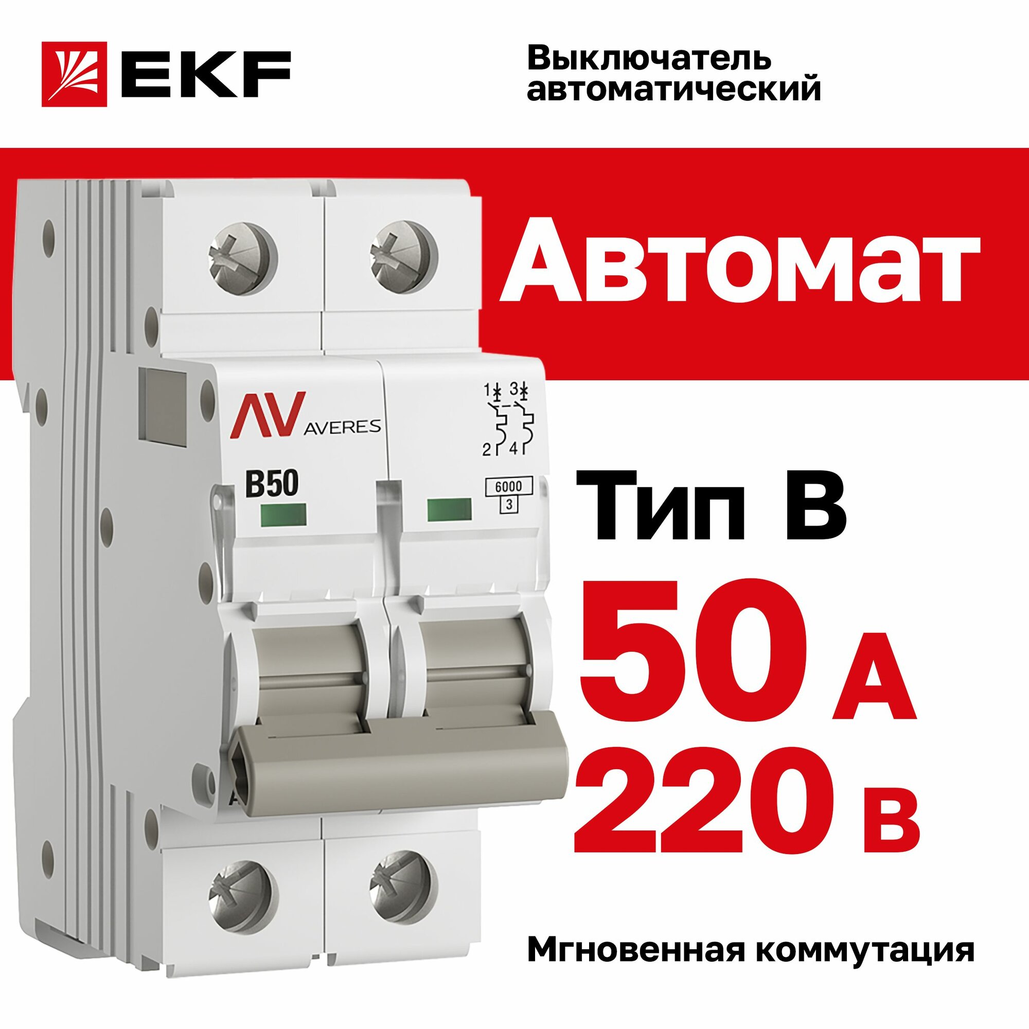 Ниже Вы можете прочитать отзывы на Автомат 50A, тип B, двухполюсный 2P, 6kA, EKF AVERES (Автоматический выключатель B50), ознакомится с подробными характеристиками, посмотреть интересные обзоры и фотографии на Автомат 50A, тип B, двухполюсный 2P, 6kA, EKF AVERES (Автоматический выключатель B50).