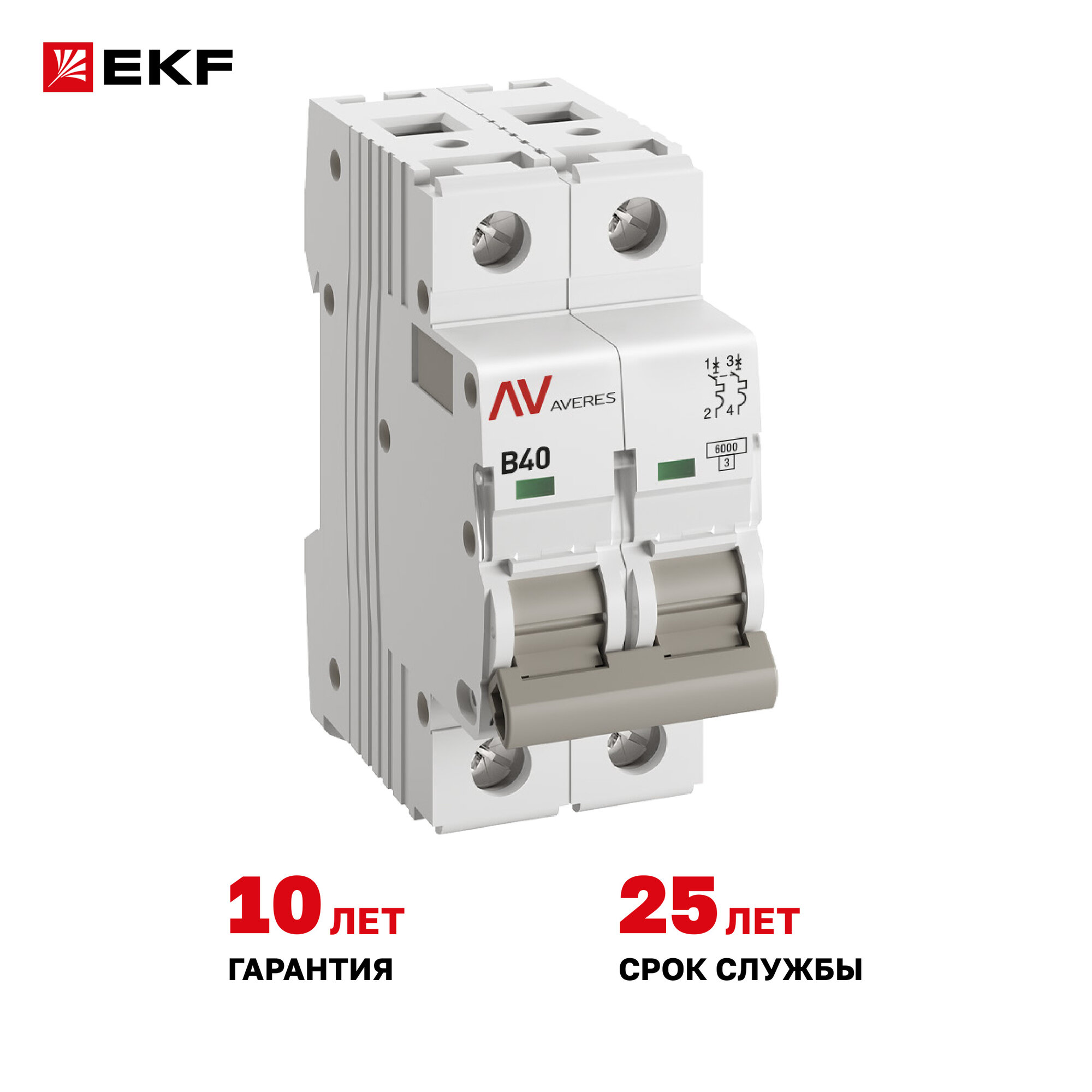 Автомат 40A, тип B, двухполюсный 2P, 6kA, EKF AVERES (Автоматический выключатель B40)