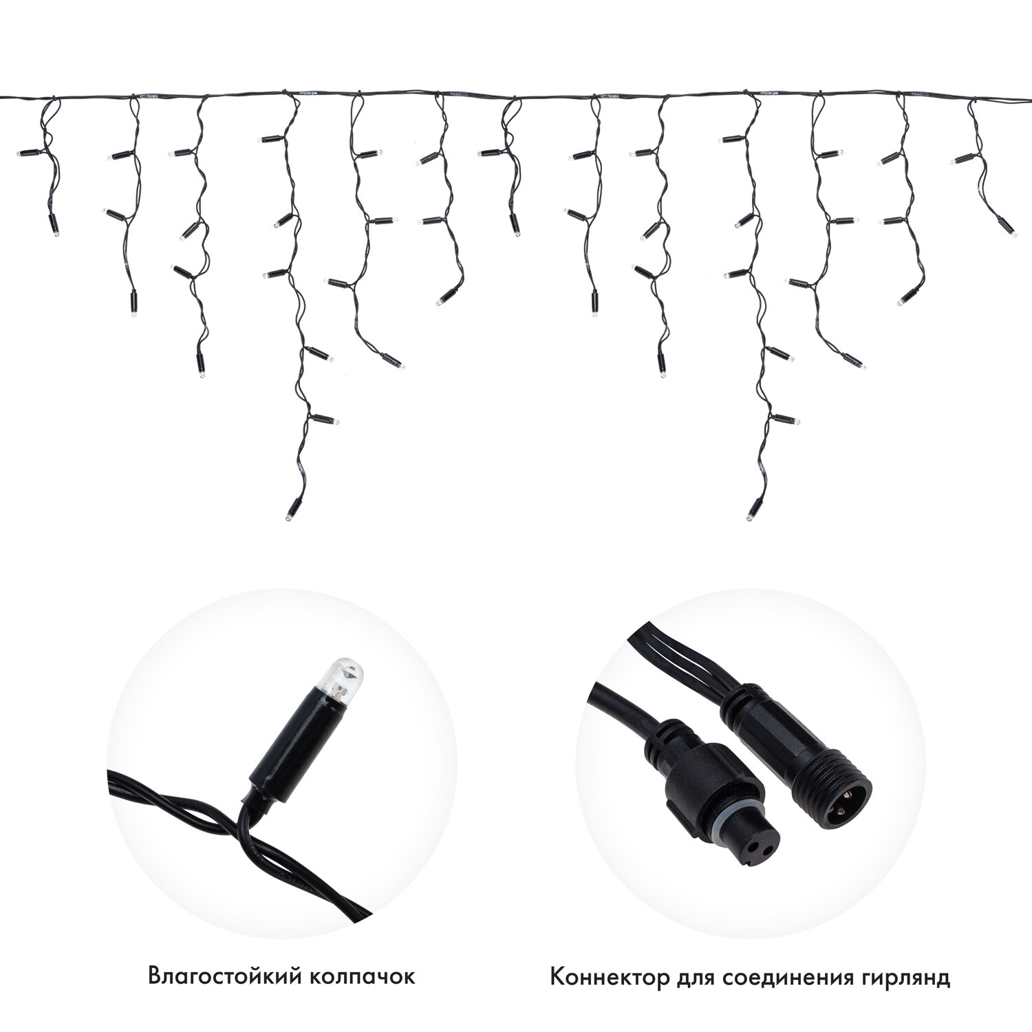 Гирлянда Neon-Night 255-046 Айсикл светодиодный, 2,4 х 0,6 м, черный провод, 230 В, диоды теплый белый, 88 LED