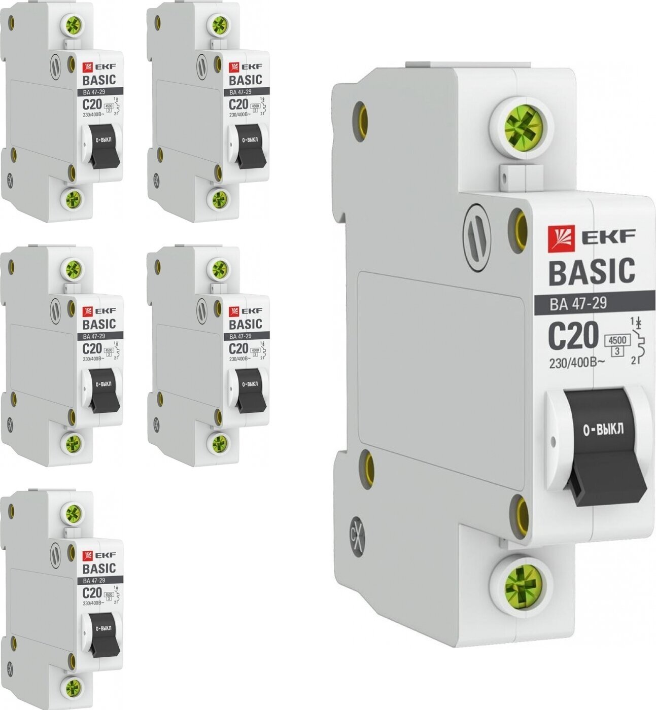 Купить Автоматический выключатель EKF ВА 47-29 Basic 1P 16А характеристика C (комплект из 5 шт.)