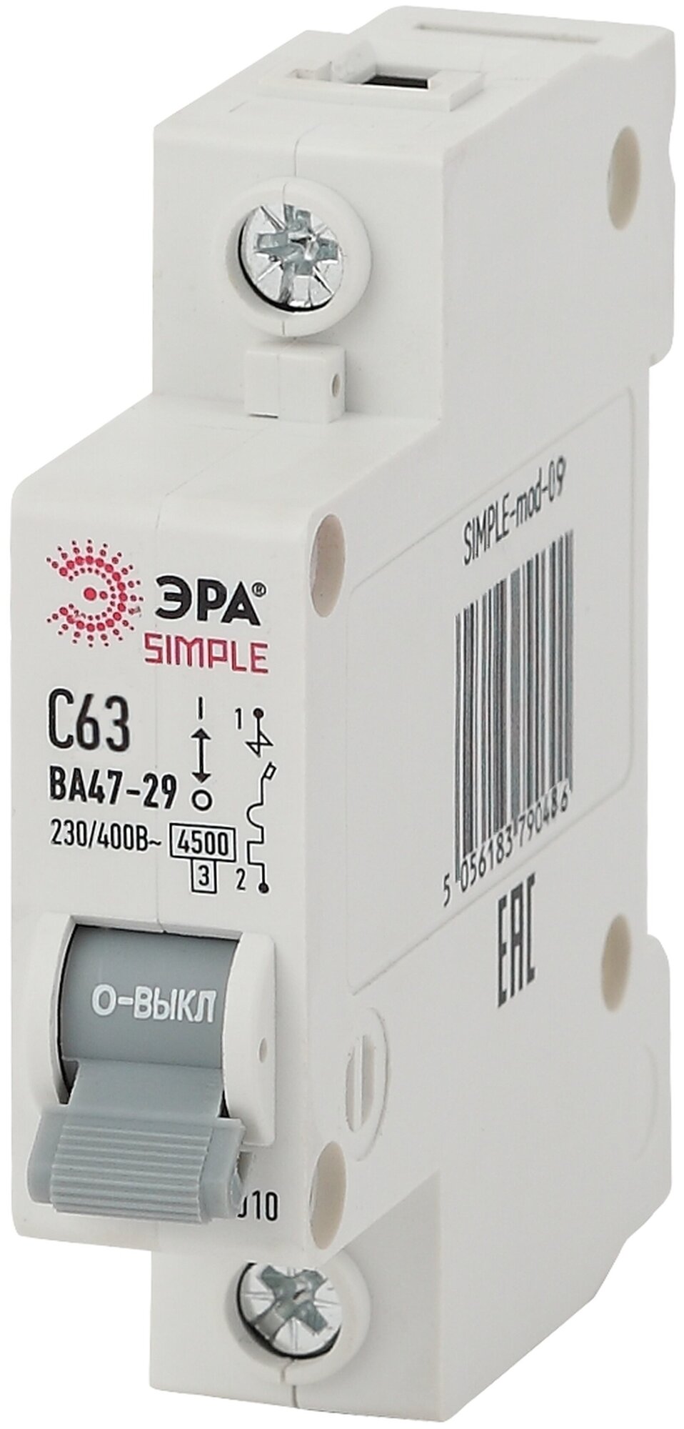 Купить Автоматический выключатель 1P (1П) 63А (C) 4,5кА ВА 47-29 SIMPLE-mod-09 Б0039226 2шт